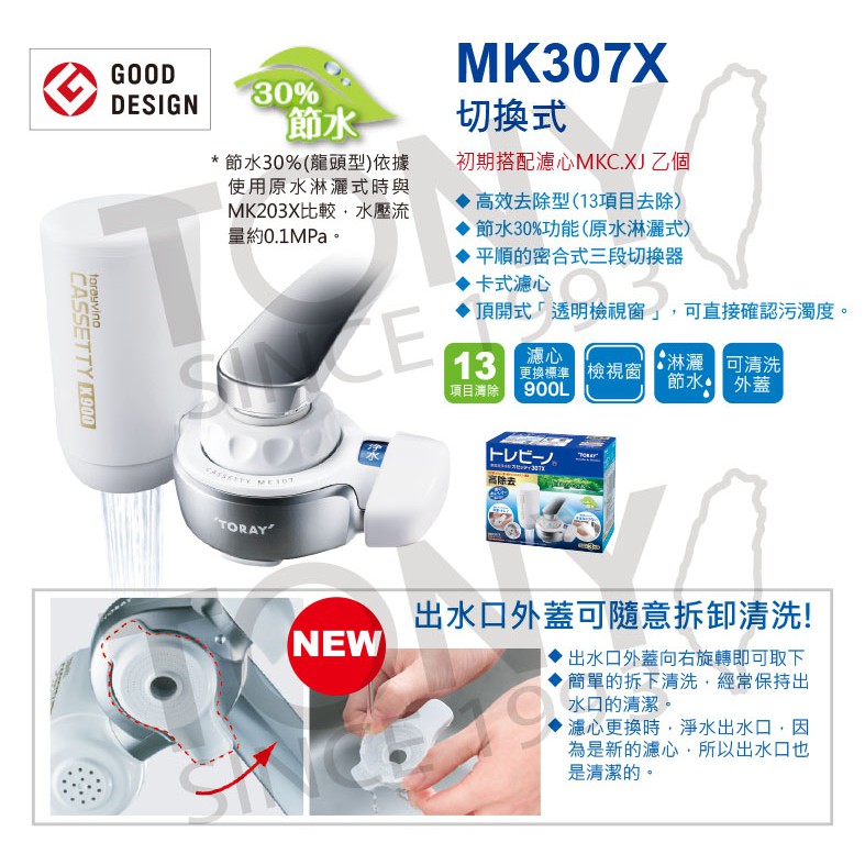 (日本TORAY東麗)淨水器MK307X (全新公司貨,附900公升濾心)-贈拭淨布