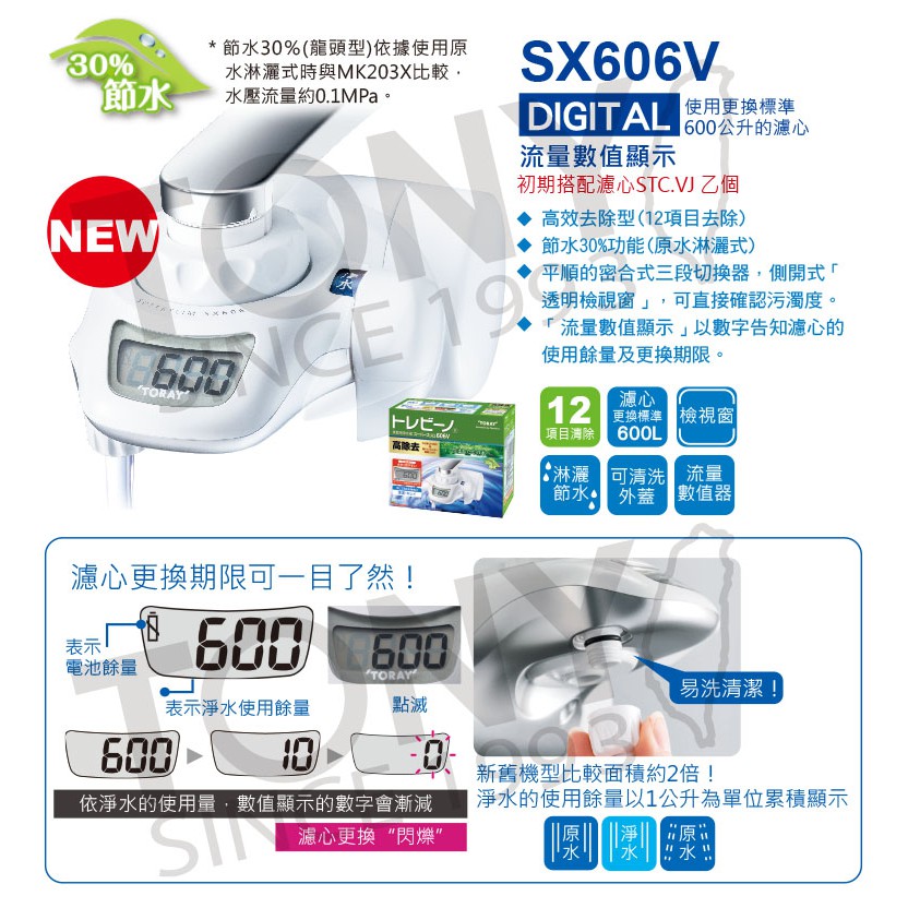 (日本TORAY東麗)淨水器SX606V (全新公司貨,附600公升濾心)-贈拭淨布