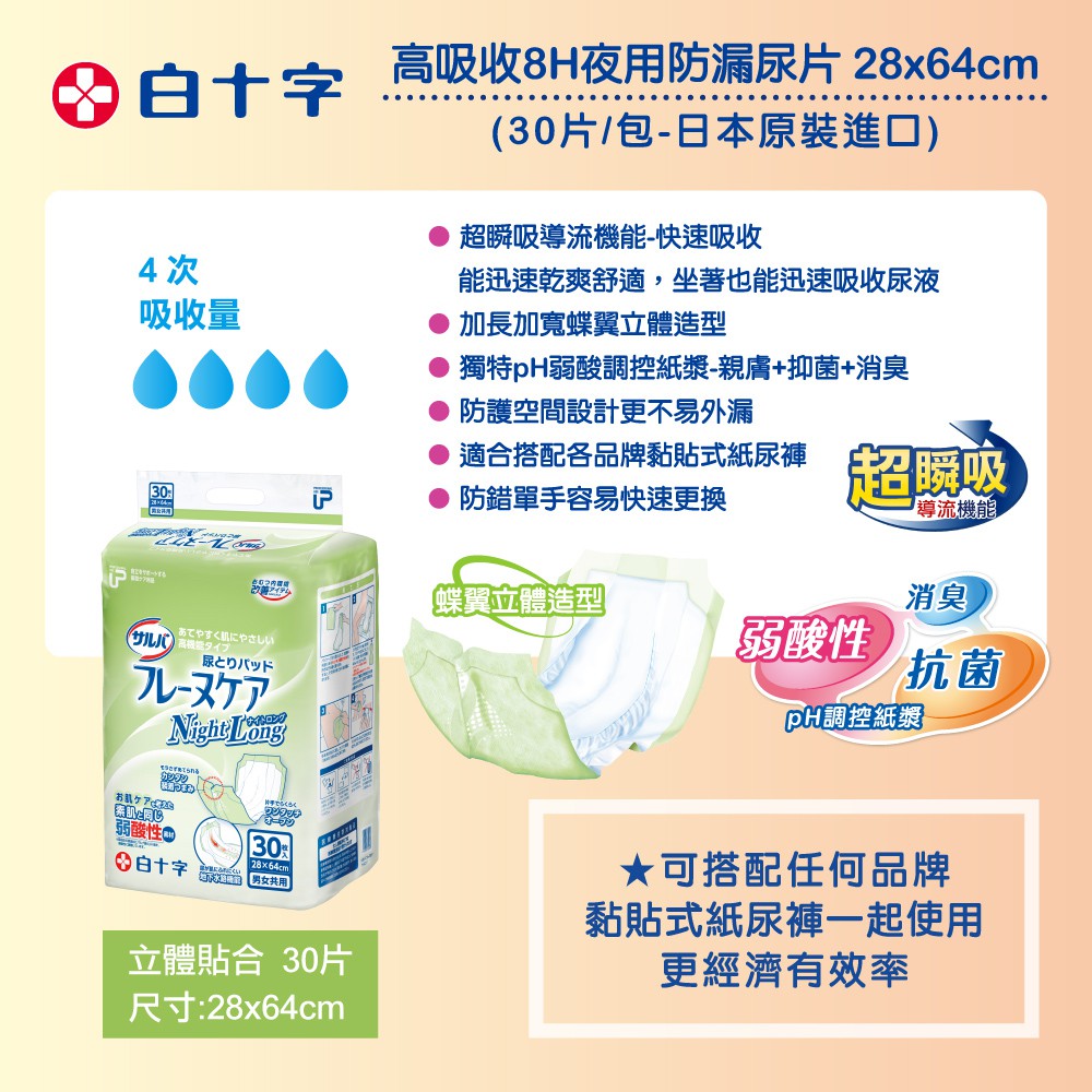 (箱購) 白十字 高吸收 8H夜用防漏尿片 (箱 90片/30片 x3包-日本原裝進口) 市價 $3,200