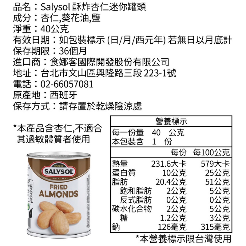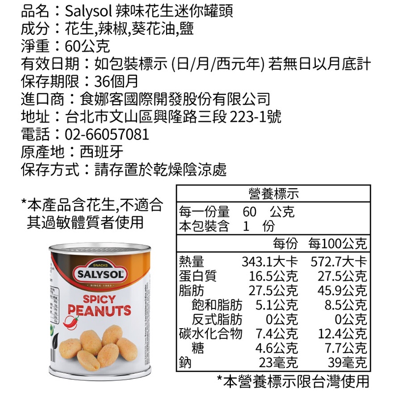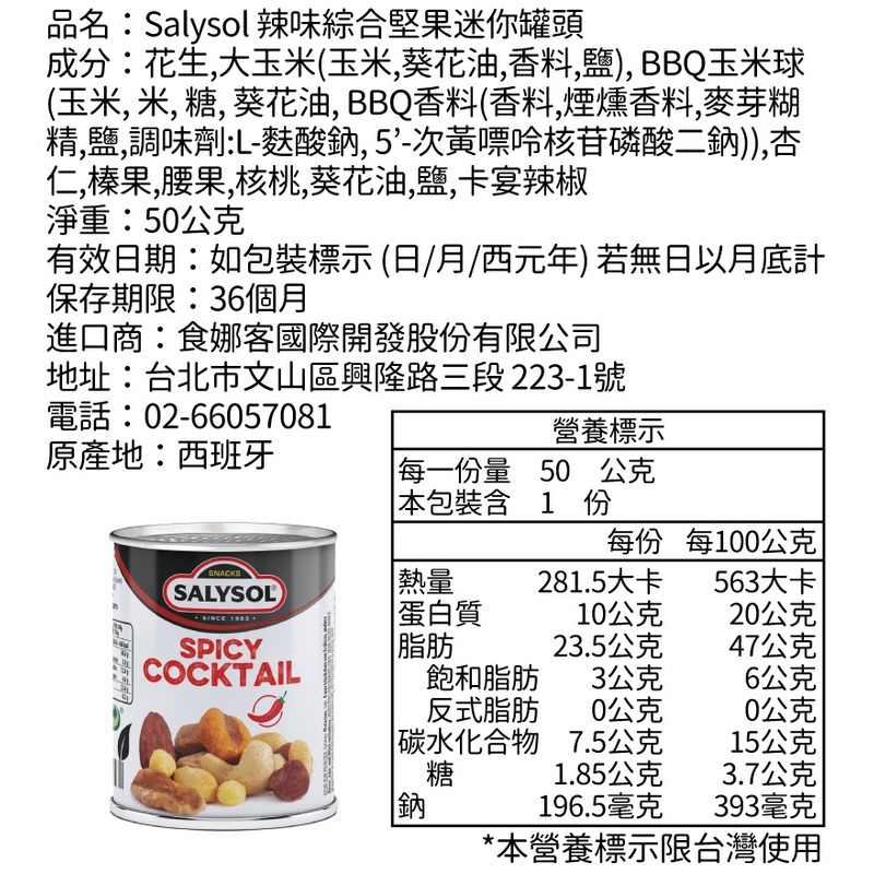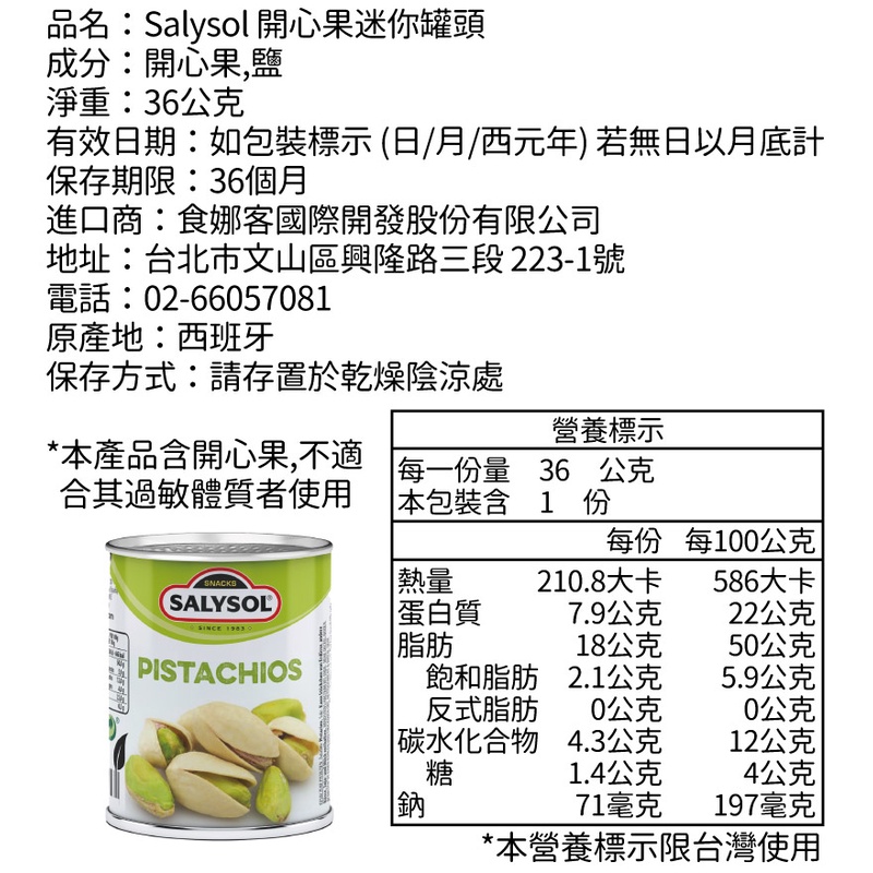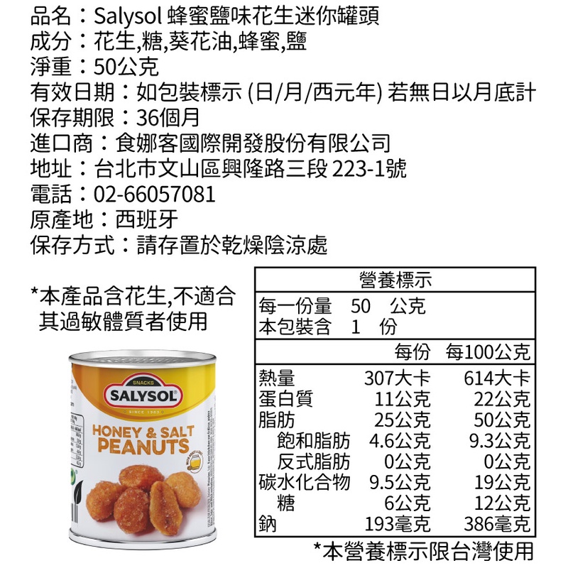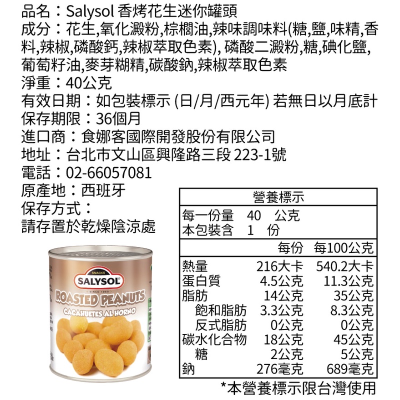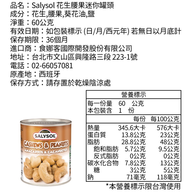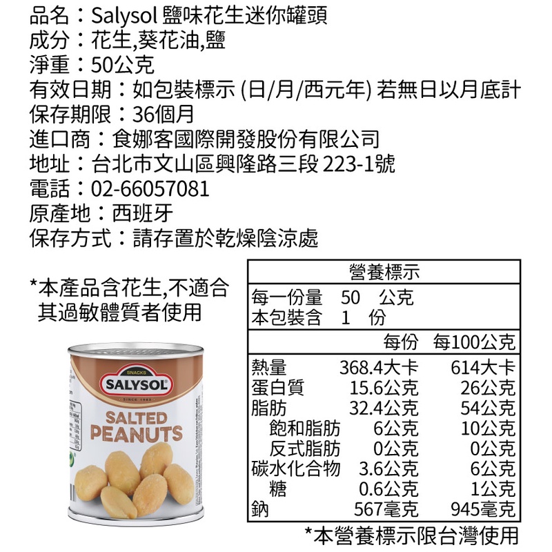 (請詳閱說明)【西班牙】Salysol薩里迷你罐頭-花生堅果系列 防疫零食 堅果 花生 腰果 開心果