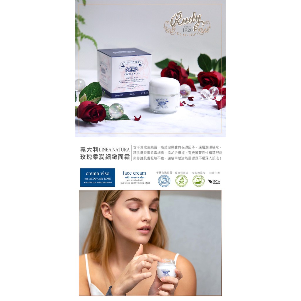 (超值組合)義大利Linea Natura玫瑰柔潤細緻面霜50ml rudy 化妝水 玫瑰嫩膚保濕化妝水(最強補水神器)