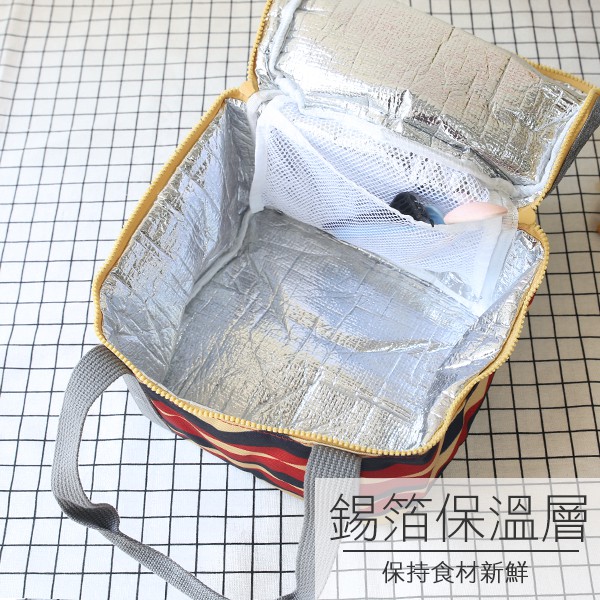 便當袋 紅藍花紋普普風方型手提便當袋 保冰袋 保溫袋 野餐 保冷 野餐袋 午餐袋 露營 食物保鮮 恐龍先生賣好貨