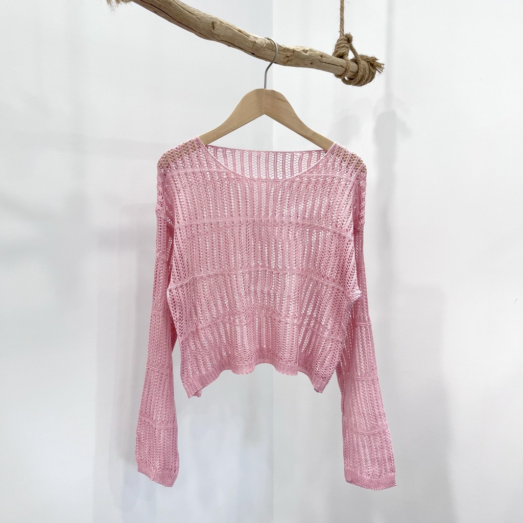 (A358)圓領長袖洞洞針織上衣-4色 短板 短版 罩衫