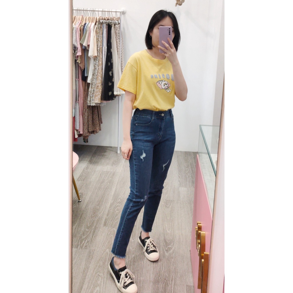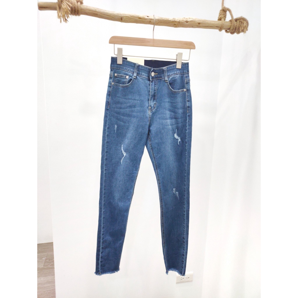 (D122)下抽鬚刷破牛仔長褲S-2L 牛仔褲 彈性牛仔褲 緊身褲 緊身牛仔褲 窄管褲 女生牛仔褲