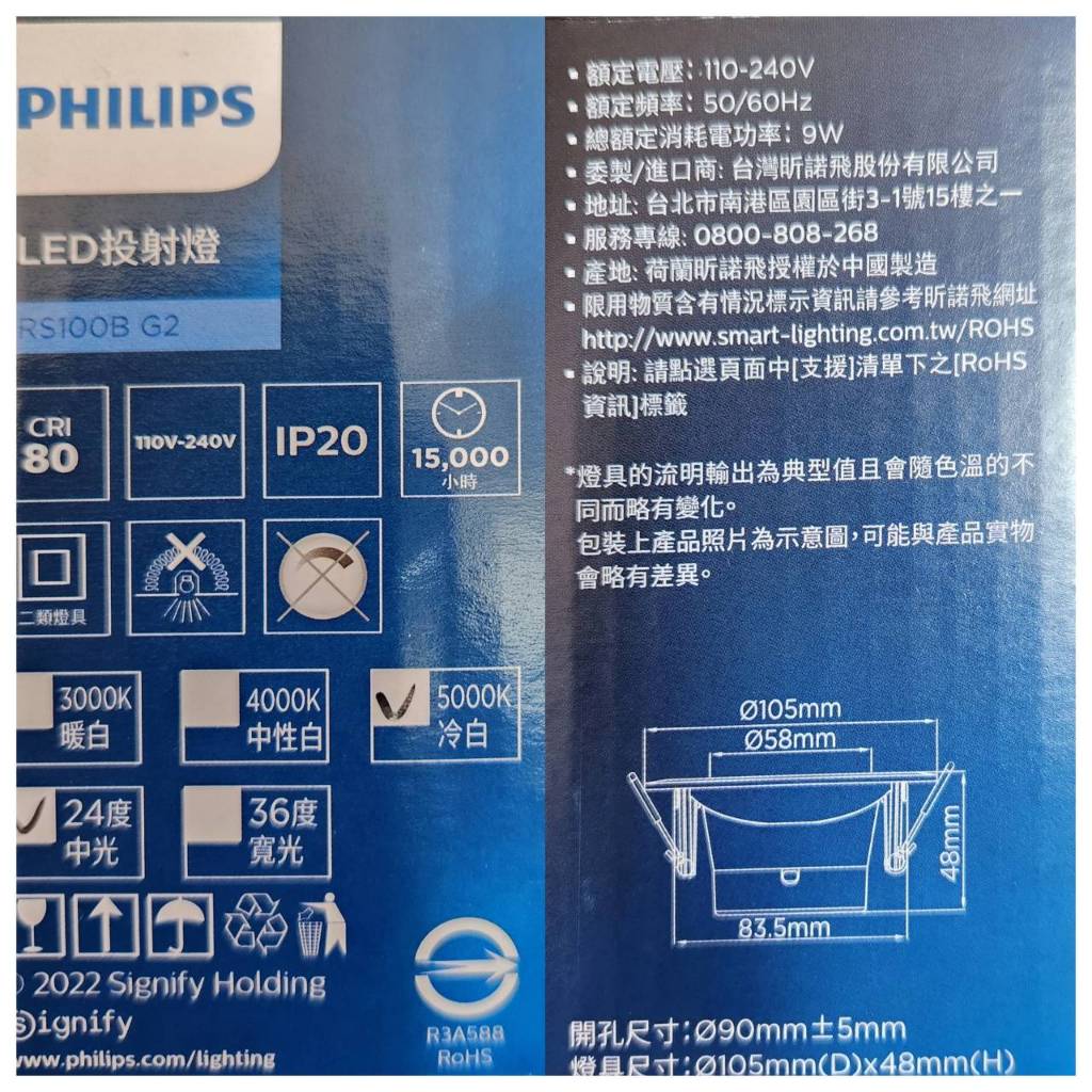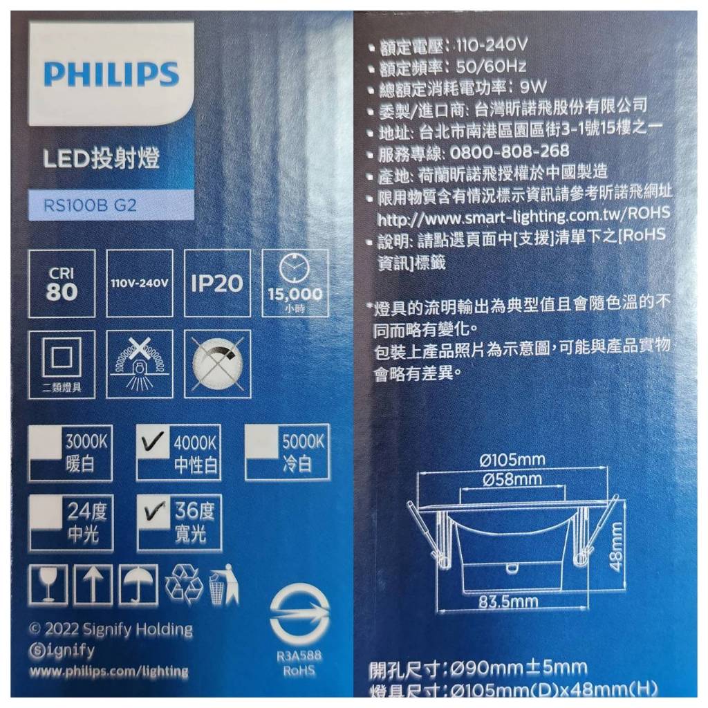 (U)現貨 PHILIPS 飛利浦 RS100B LED投射燈 新款 6W =7.5CM 9W= 9CM 9.5CM