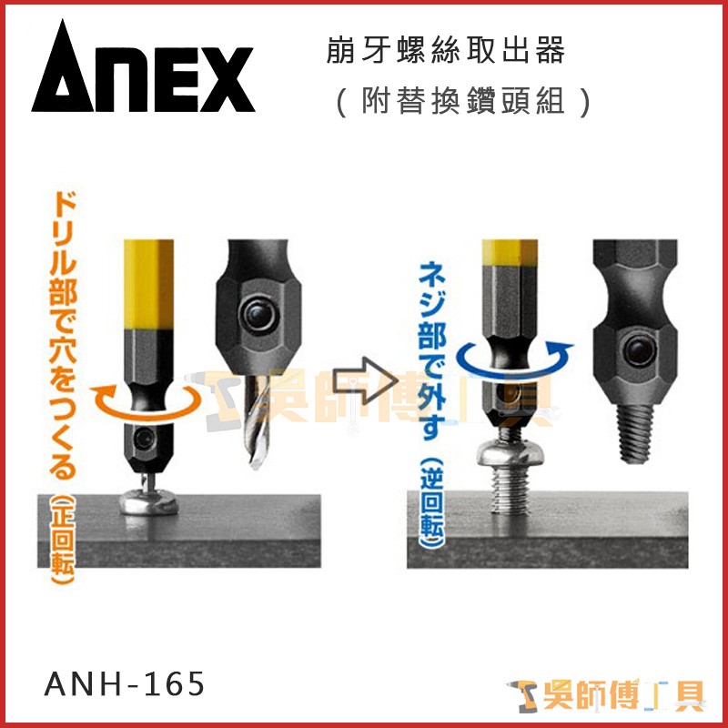 【吳師傅工具】安耐適 ANEX ANH-165 崩牙螺絲取出器(可用M2.5~3)(附替換鑽頭組)