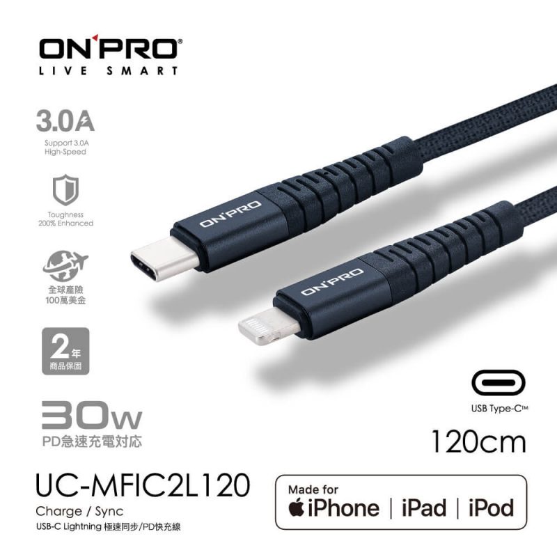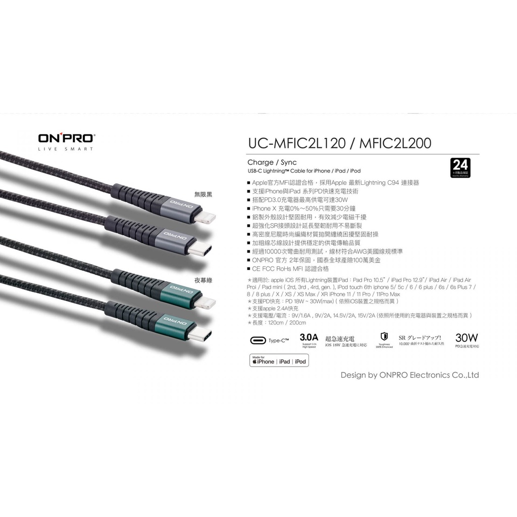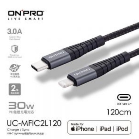 *限時優惠*ONPRO UC-MFIC2L apple MFI認證 TypeC-Lightning 快充傳輸線