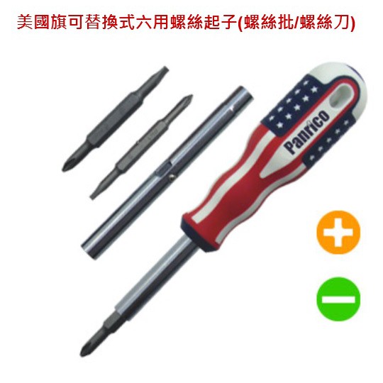 **東順網路** Panrico 美國旗可替換式六用螺絲起子(螺絲批/螺絲刀) FM56C-614075