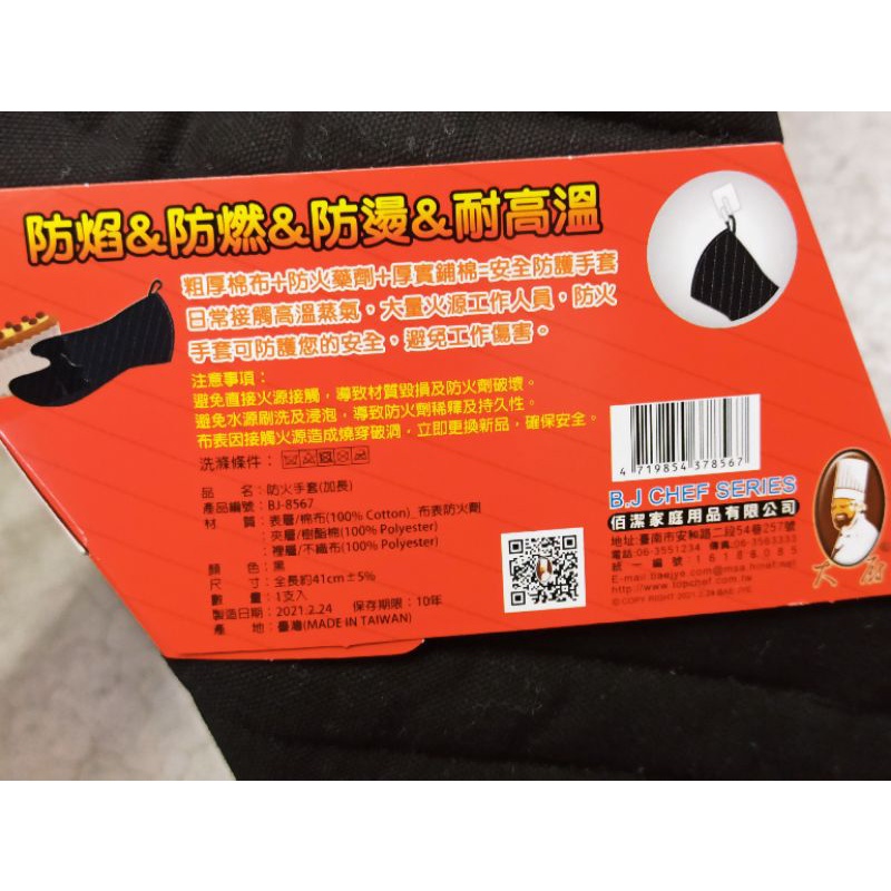 ** BJ8567 加長防火手套/廚房使用/全長約41cm/1入/黑色