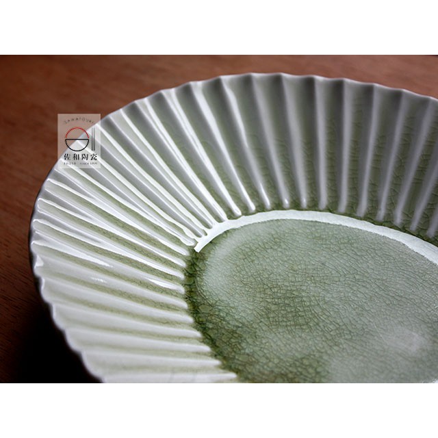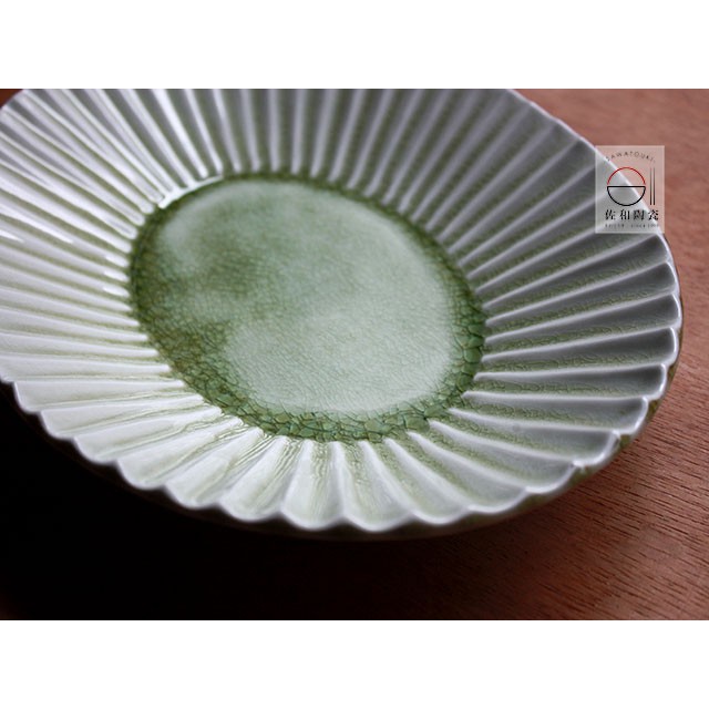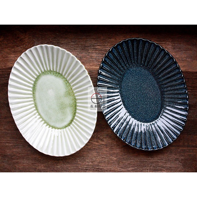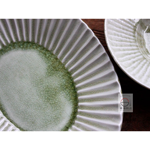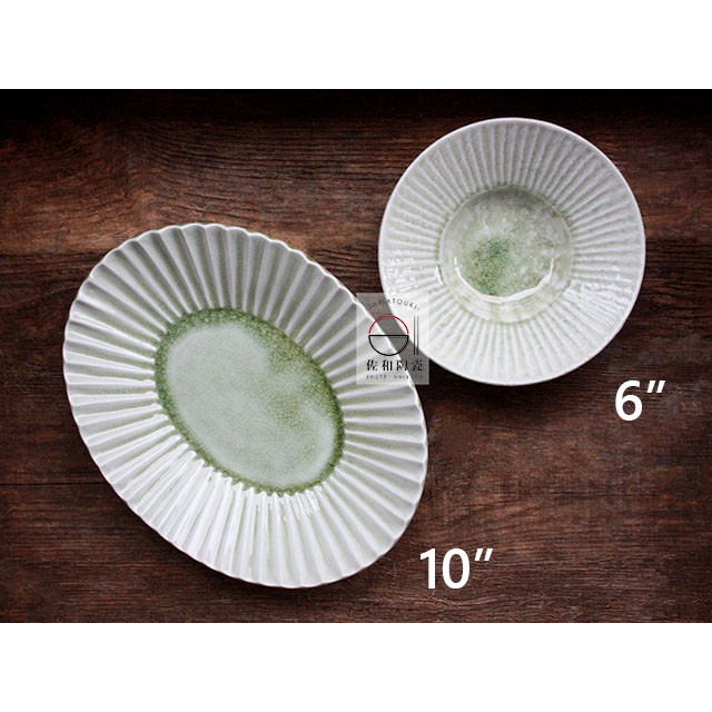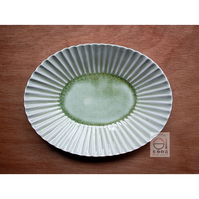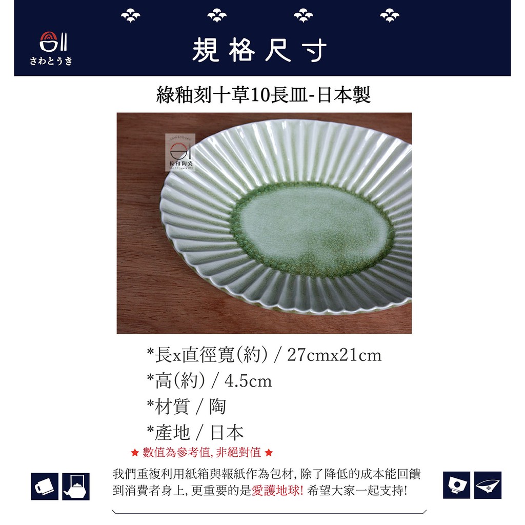 +佐和陶瓷餐具批發+【XL070913-19綠釉刻十草10長皿-日本製】日本製 長皿 盤 青菜盤 主食盤 宴客盤 餐具