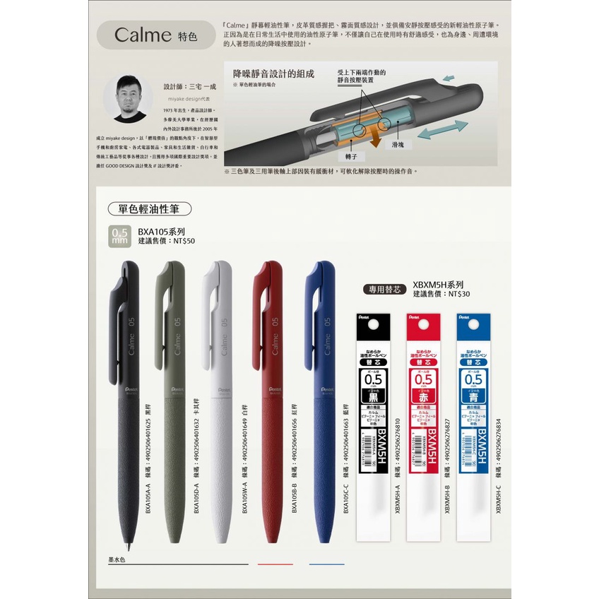+富福里+ 飛龍 BXA105 三宅一成 靜音 輕油性筆 0.5 /0.7,替芯0.5/0.7 原子筆