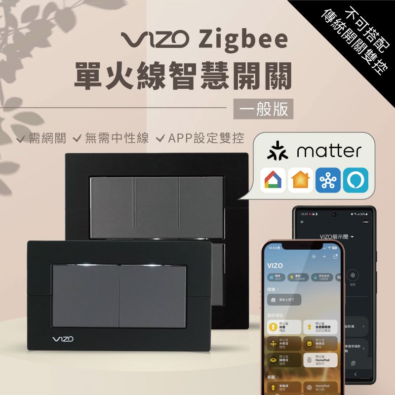[一般單火版]需網關 VIZOZigbee智慧開關 不可搭"傳統開關"雙控 遠端定時聲控SiriGoogleMatter