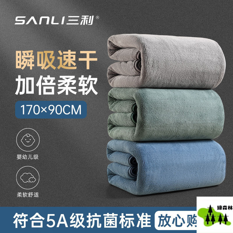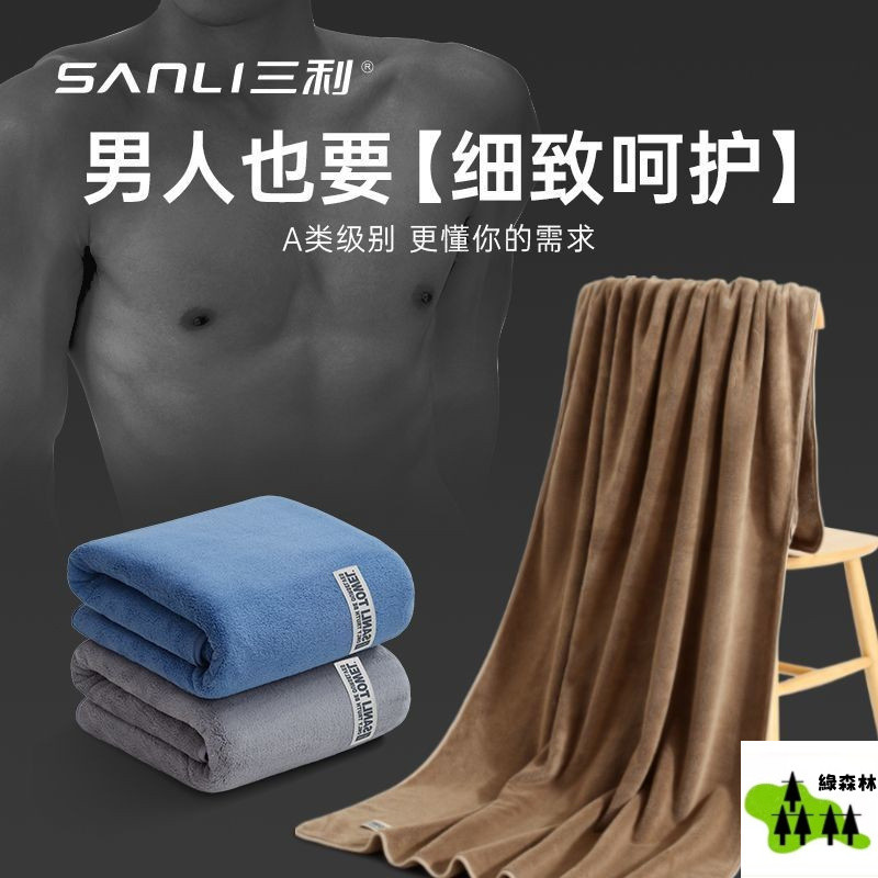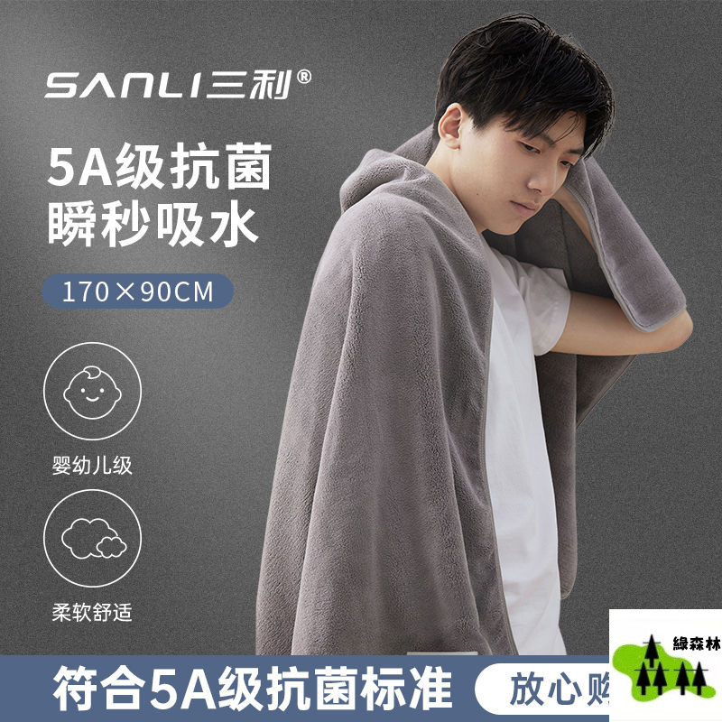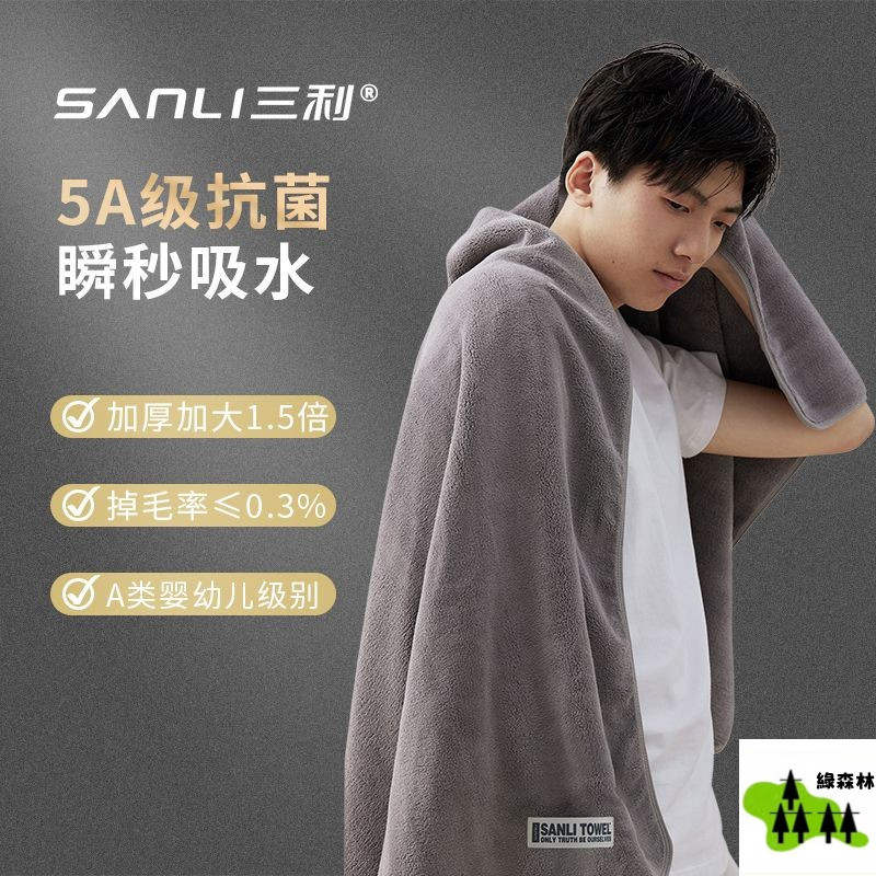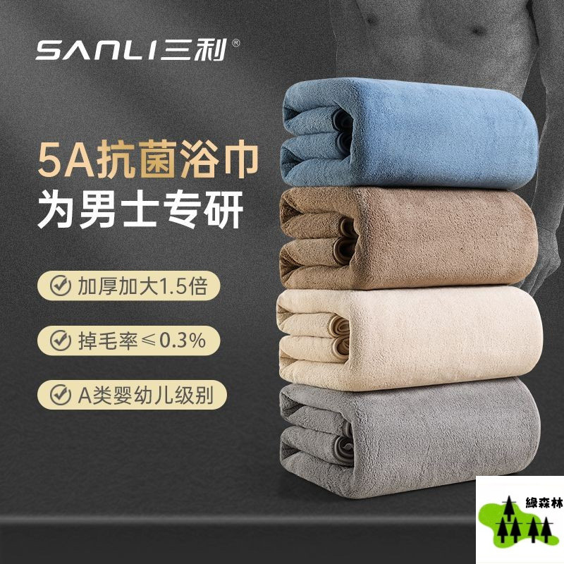 三利浴巾5A抗菌男士洗澡專用比純棉吸水不掉毛可穿可裹速幹一等品 柔軟不掉毛大號沙灘巾 男士浴巾珊瑚絨可穿式 浴巾洗澡遊