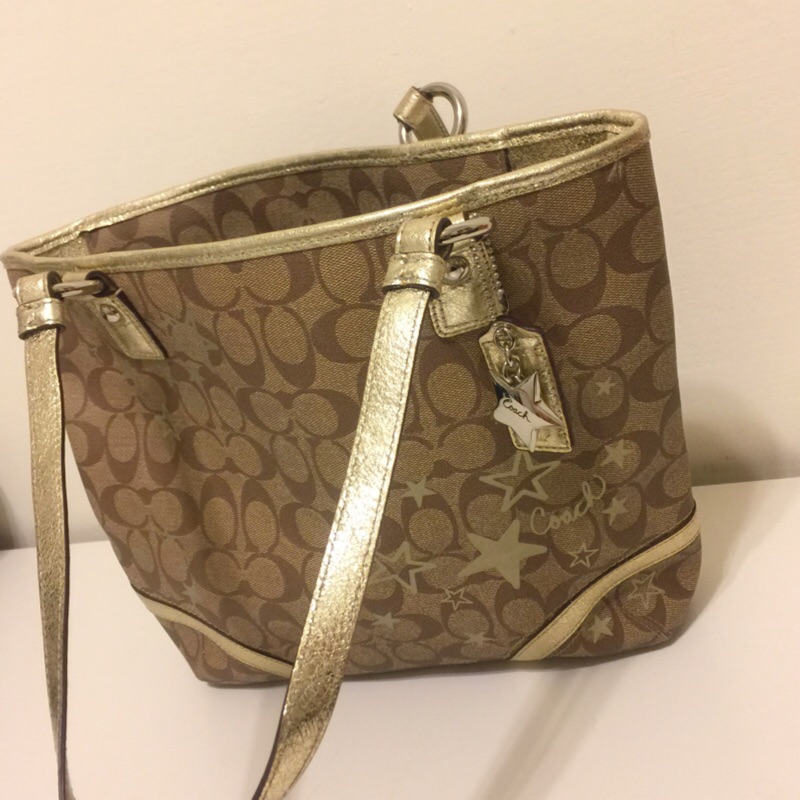 [二手]Coach金色星星塗鴉托特包