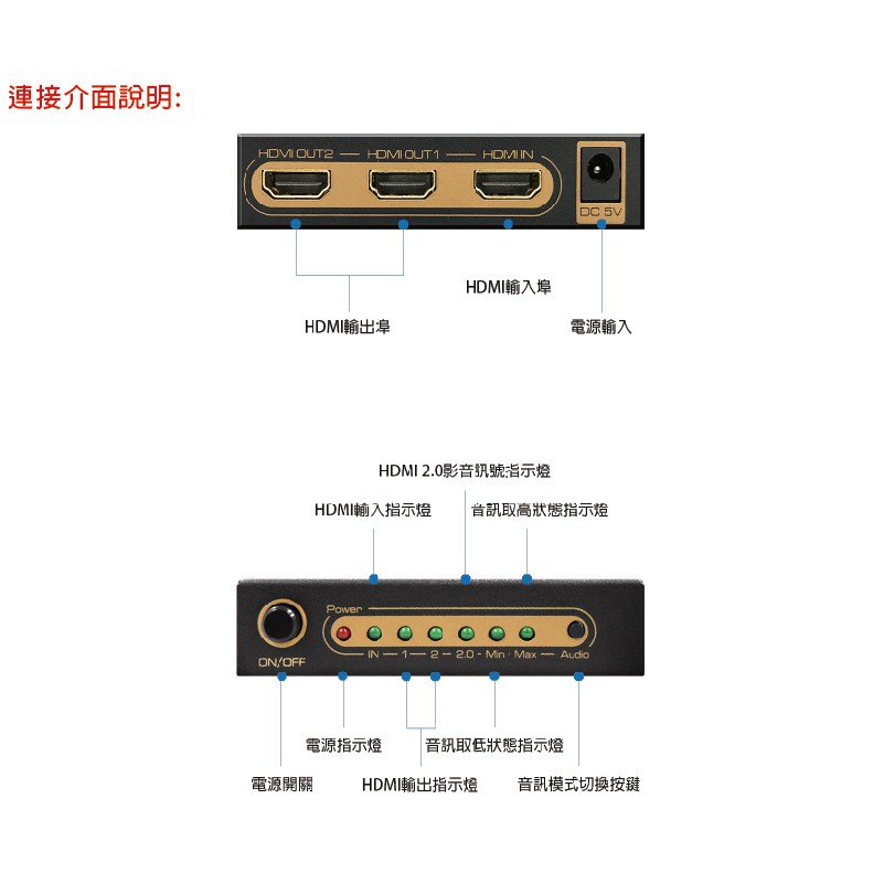 DigiSun UH812 4K HDMI2.0 一進二出影音分配器