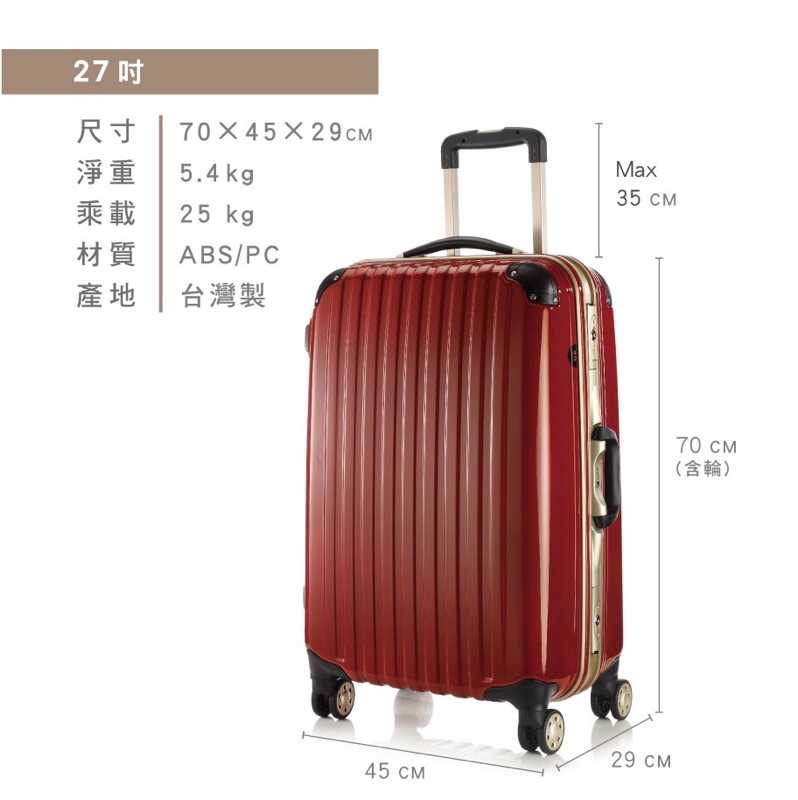 <台灣製造 含運> WIND 風之旅者-晴光 亮面 硬殼 18 /27 /29 吋行李箱 鋁框箱-星燦紅 有 TSA鎖