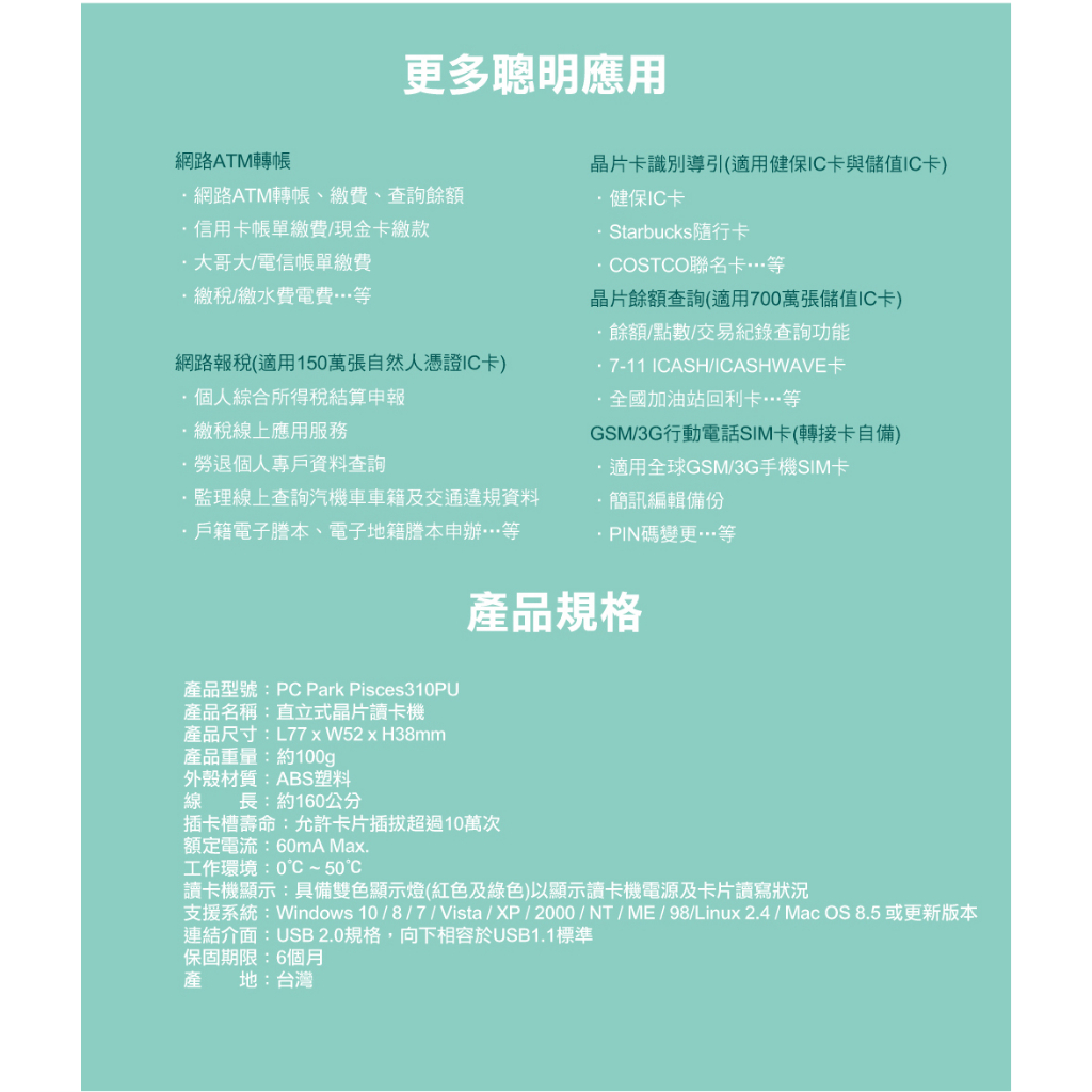 +富福里+Pisces-310 虹堡 直立式 晶片 讀卡機 晶片卡 ATM轉帳 報稅 USB 健保卡 金融卡