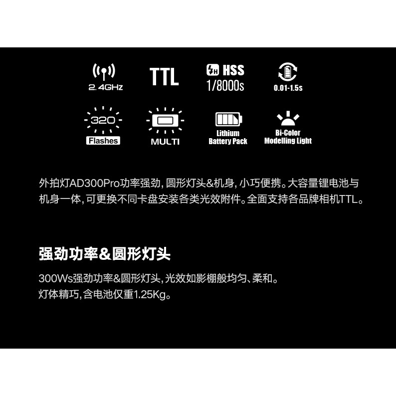 [攝影甘仔店]Godox 神牛AD300 Pro AD300PRO 大出力輕量化 口袋閃燈棚燈 圓型燈頭 300w外拍燈