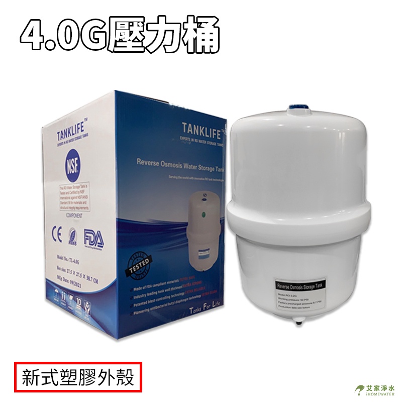 -艾家淨水-【附發票】RO壓力桶 / 儲水桶 / 塑膠桶 含球閥開關 1/4"NPT 4.0G加侖 CE認證/NSF認證