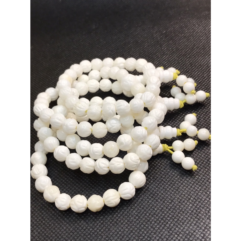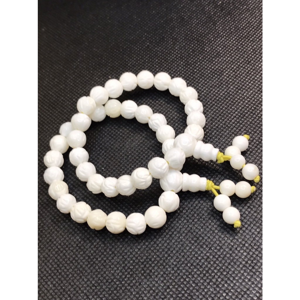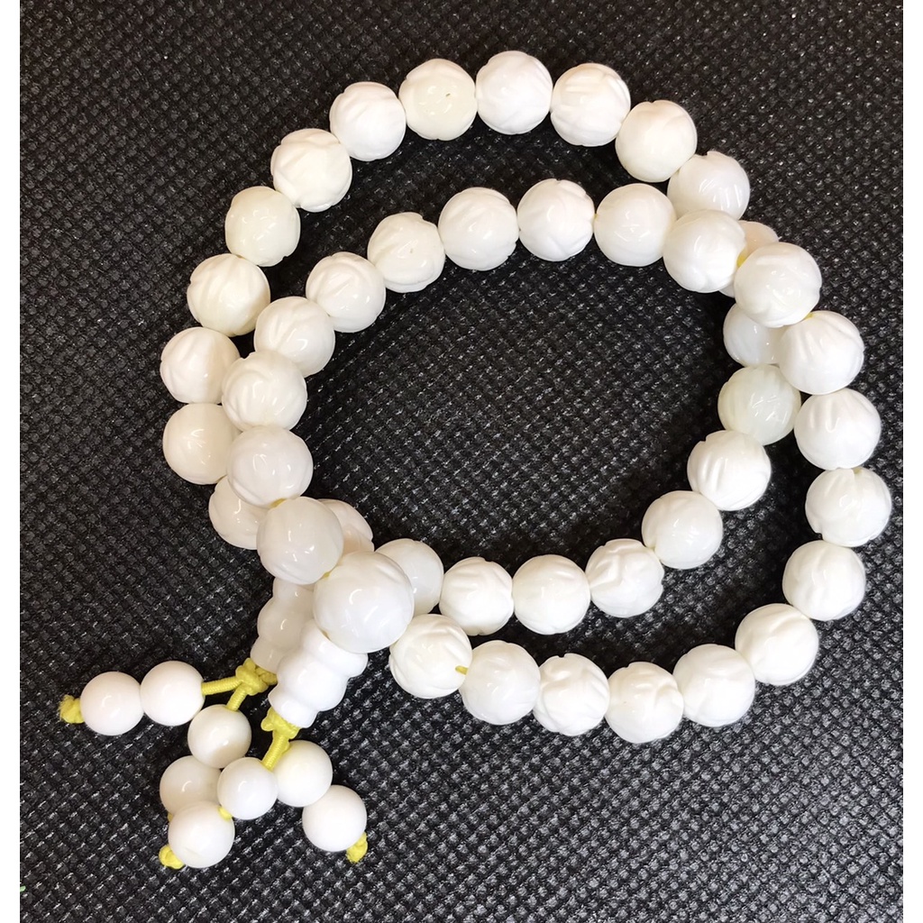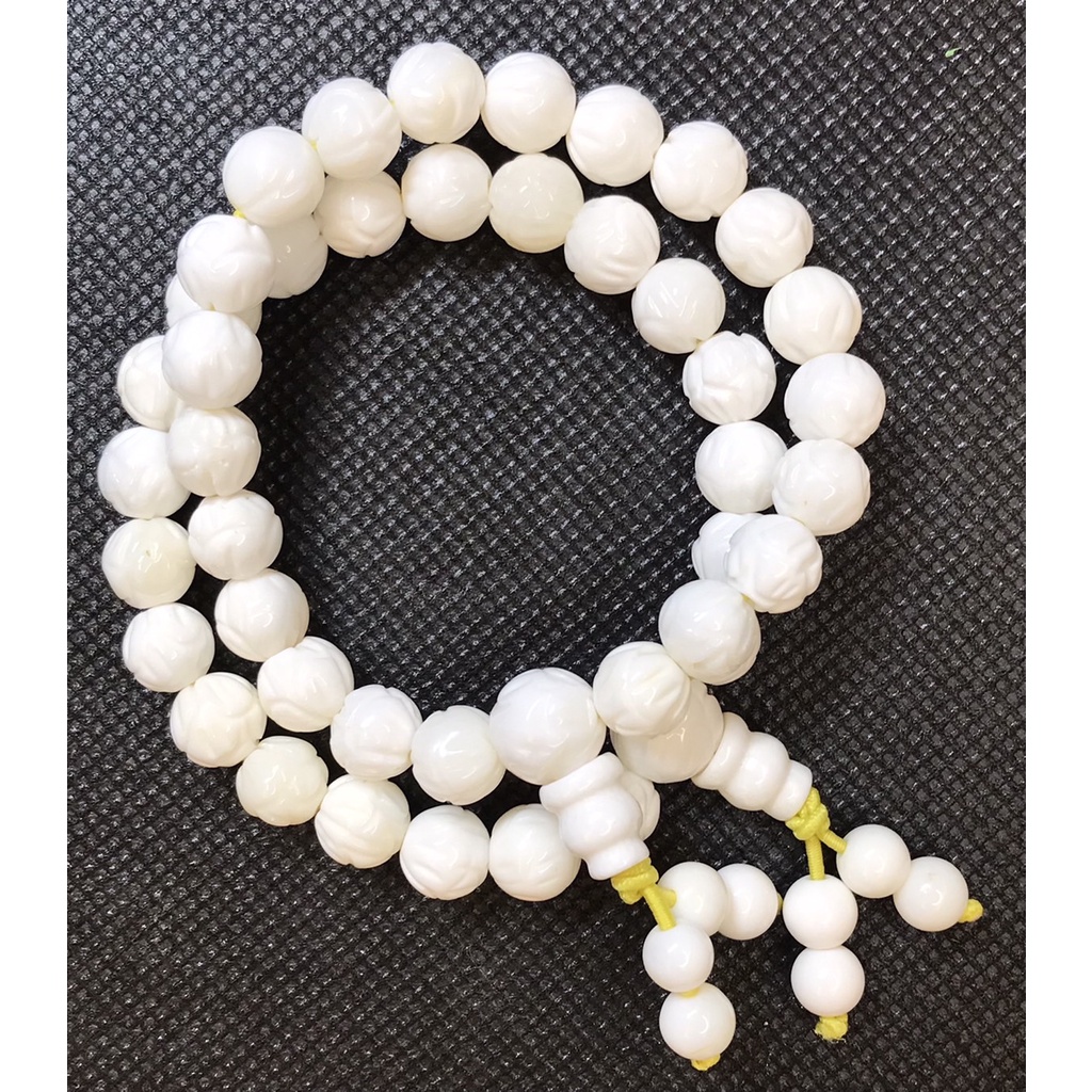 [采宓]天然硨磲手珠 白硨磲精雕蓮花手串 佛教七寶之一