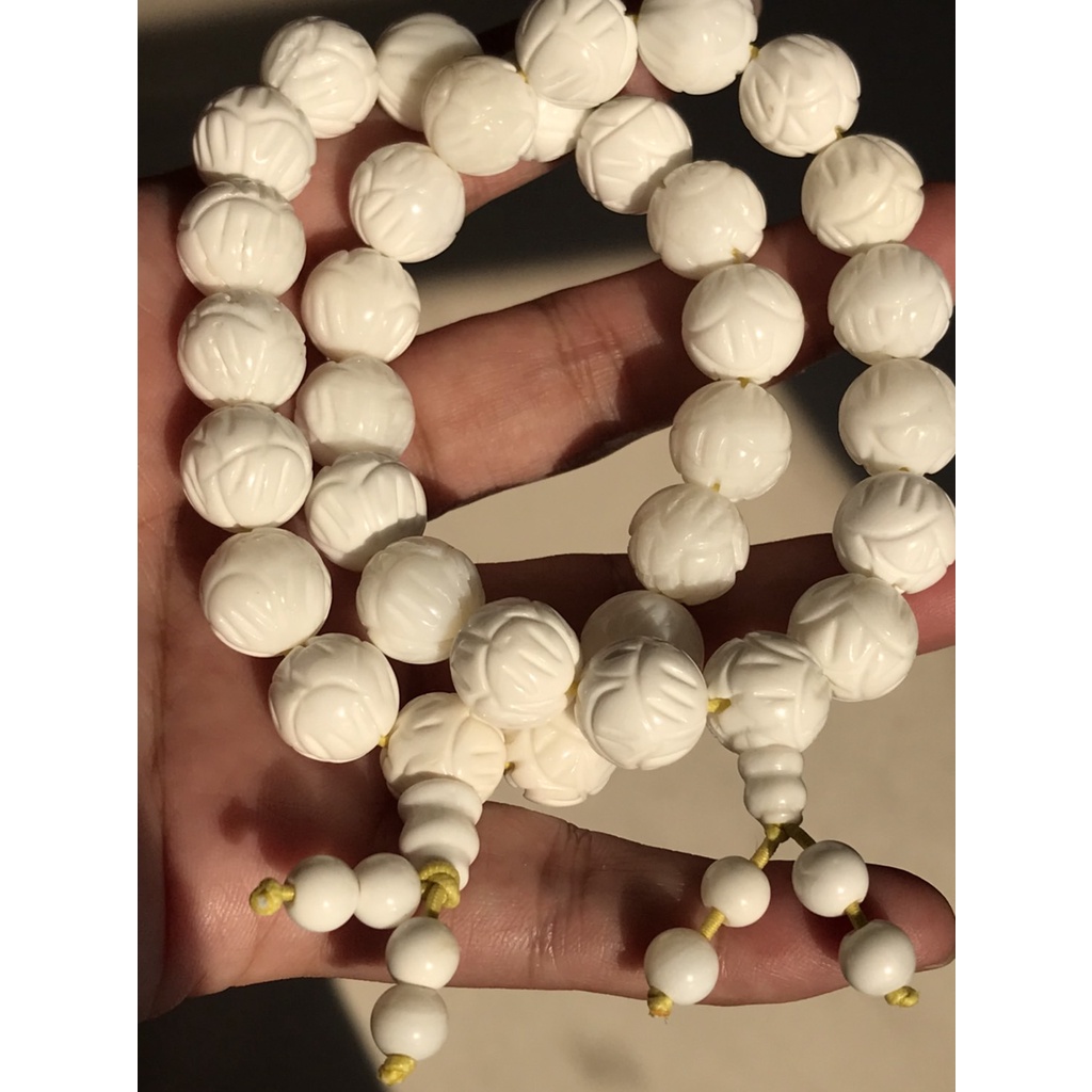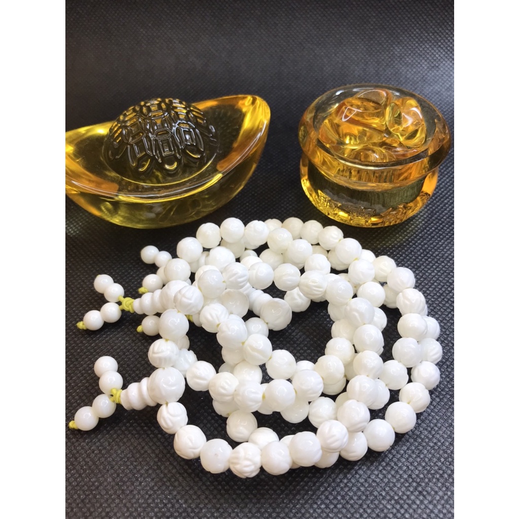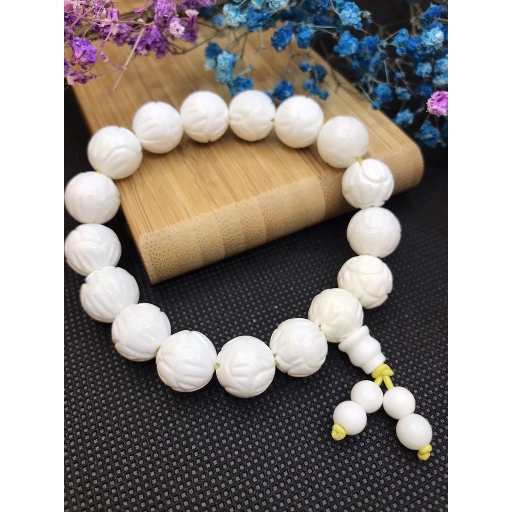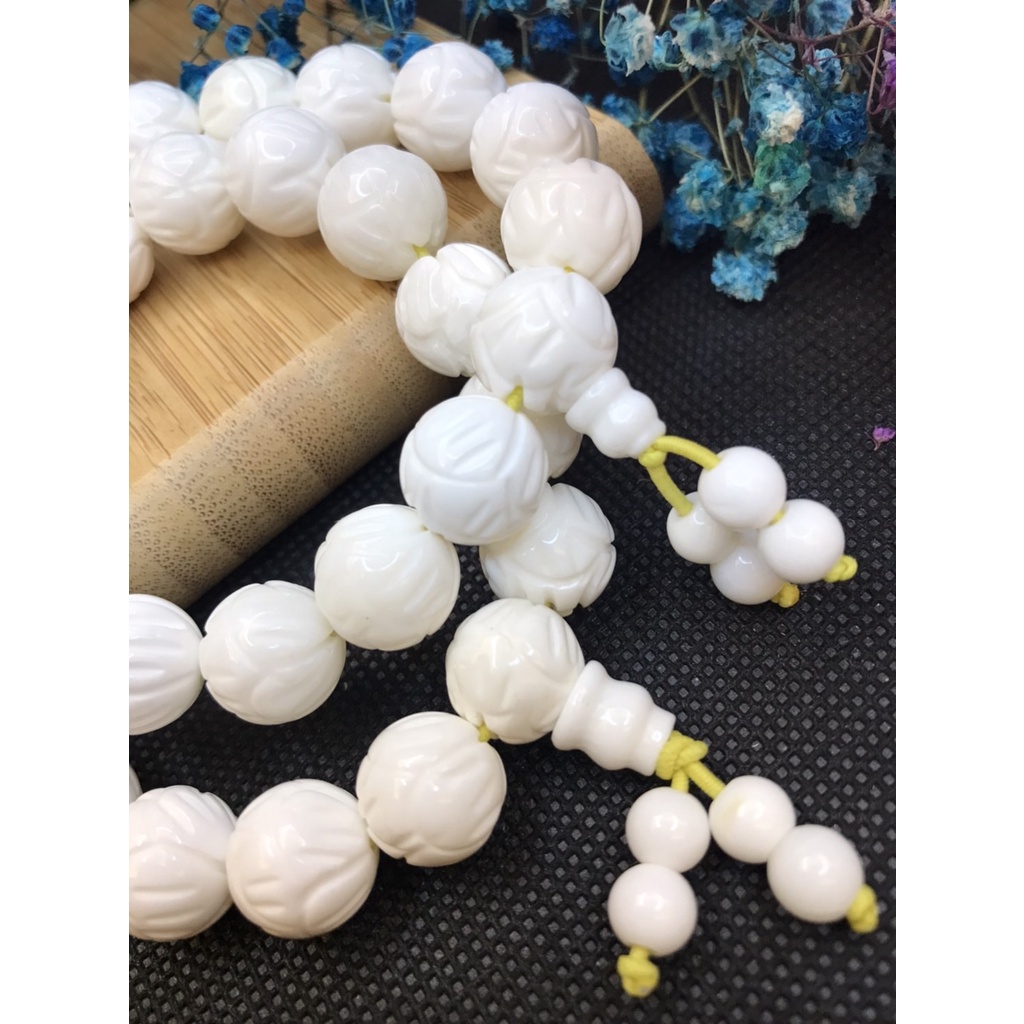 [采宓]天然硨磲手珠 白硨磲精雕蓮花手串 佛教七寶之一