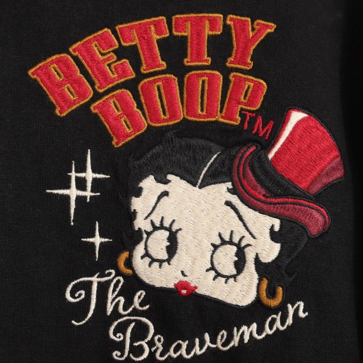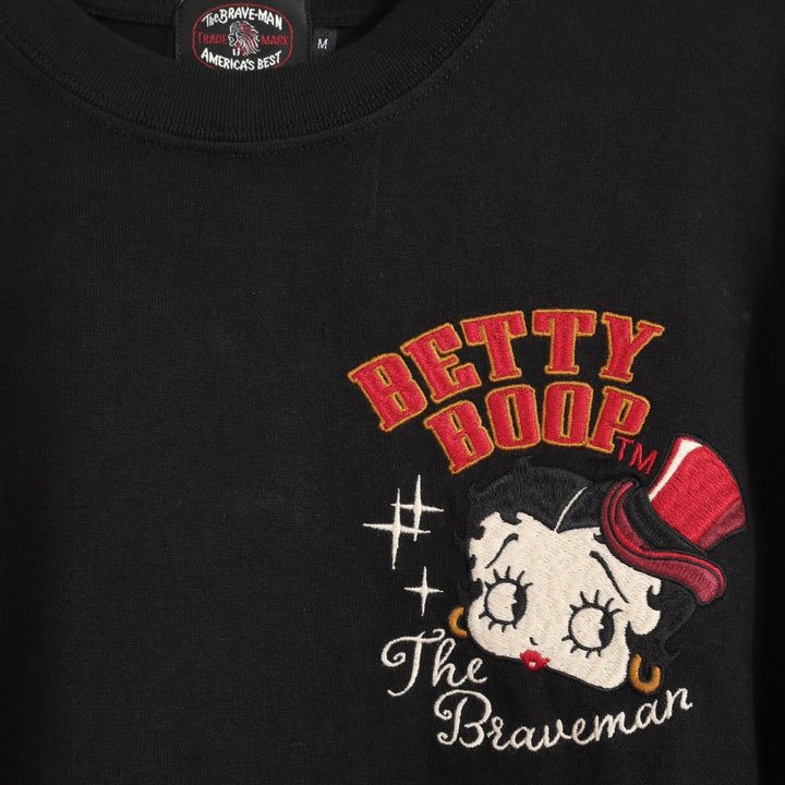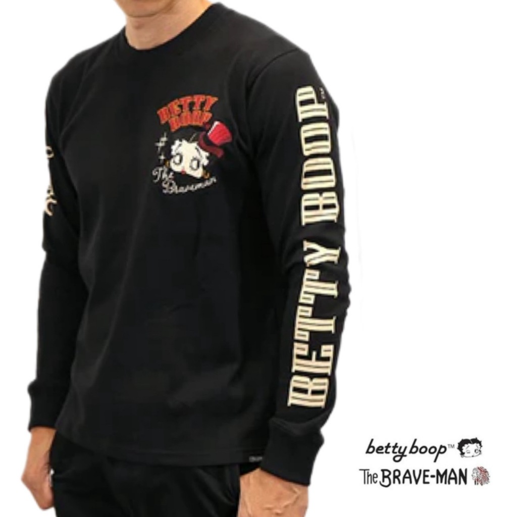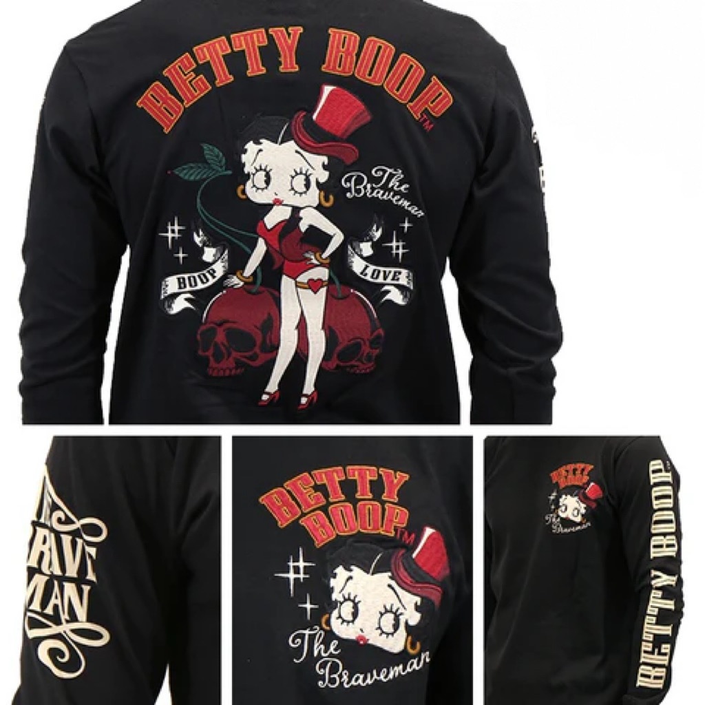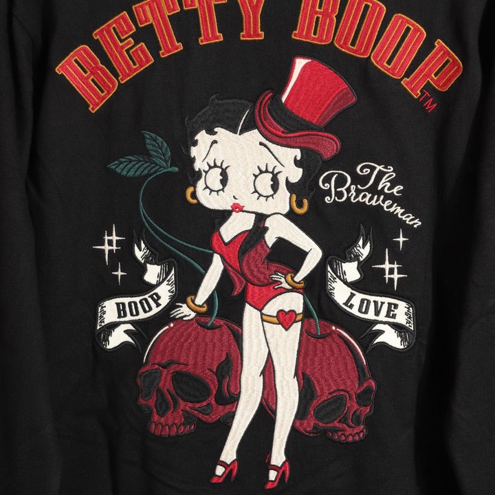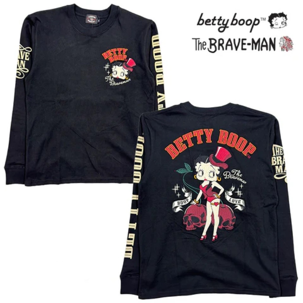 -開關倉庫- 日本 VANSON × BETTY BOOP 電繡 骷髏櫻桃 長袖上衣 BBB-2446 黑