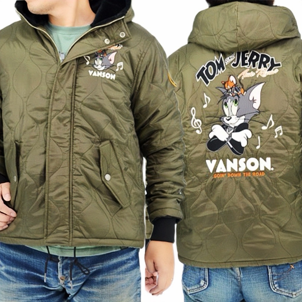 -開關倉庫- 日本 VANSON × TOM&JERRY 聯名 絎縫 連帽外套 TJV-2442 黑/綠