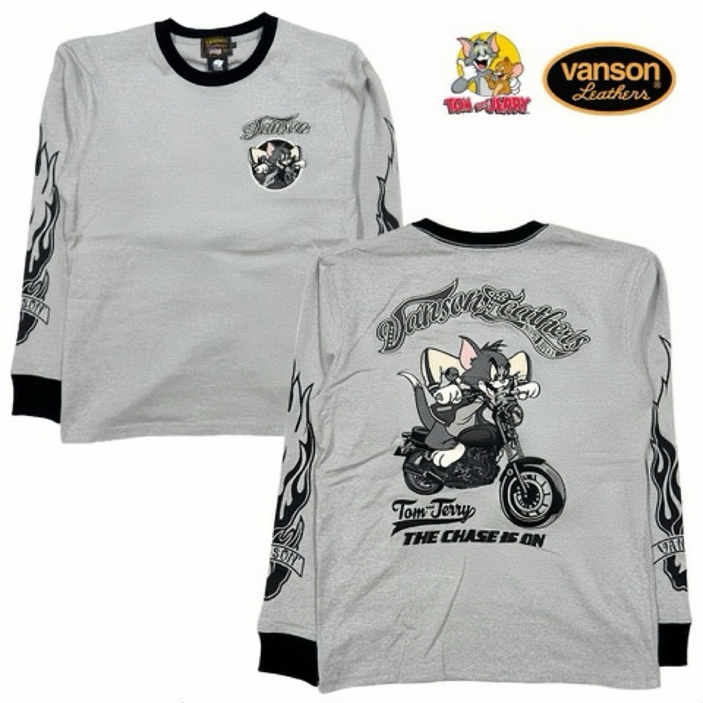 -開關倉庫- 日本 VANSON × TOM&JERRY 聯名 電繡 長袖上衣 TJV-2434 黑/灰