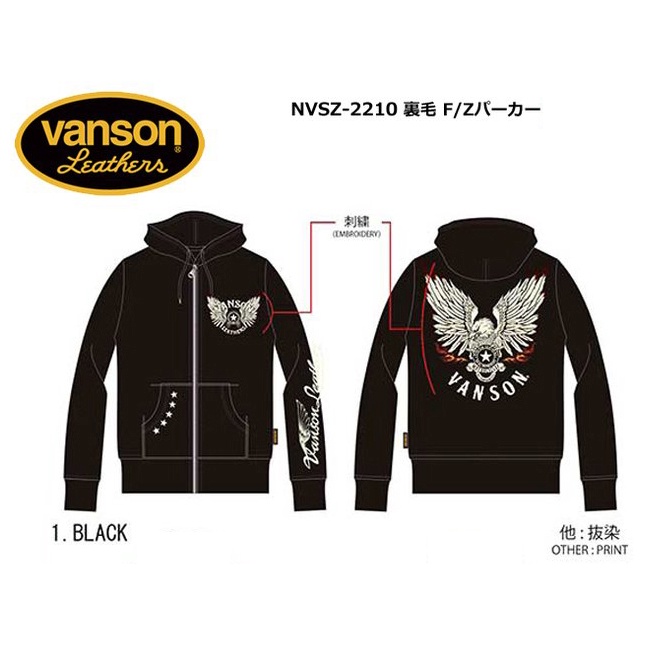 -開關倉庫-日本 VANSON 秋冬黑色長袖帽T NVSZ-2210