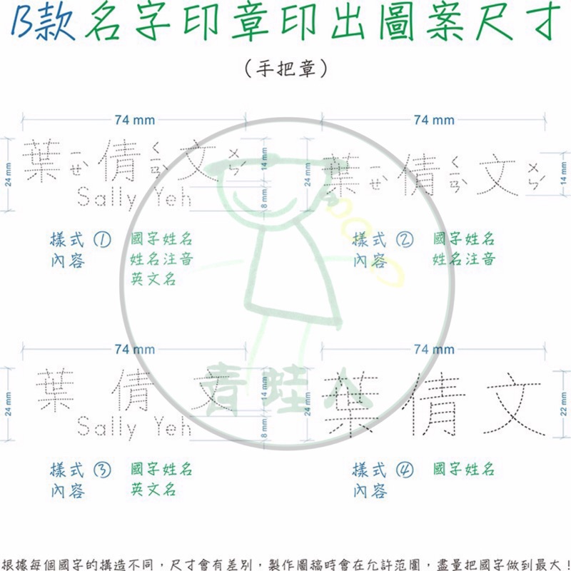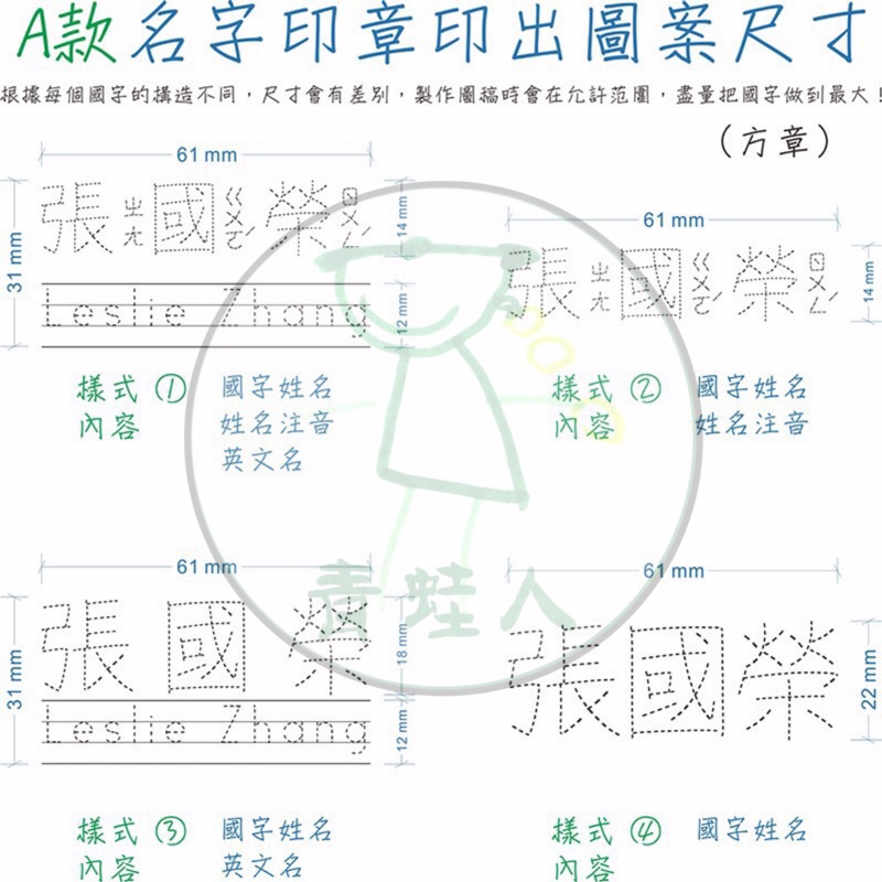 [預購7-14天] [客製化] 虛線描寫 名字描寫印章 國字 注音 英文描寫 橫式/直式【青蛙人】