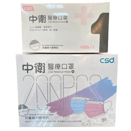 中衛醫療口罩 兒童及小臉專用 第一等級醫療口罩 醫用口罩 CSD 200片/盒(藍色+粉紅色) 50片/盒(粉紅/藍)