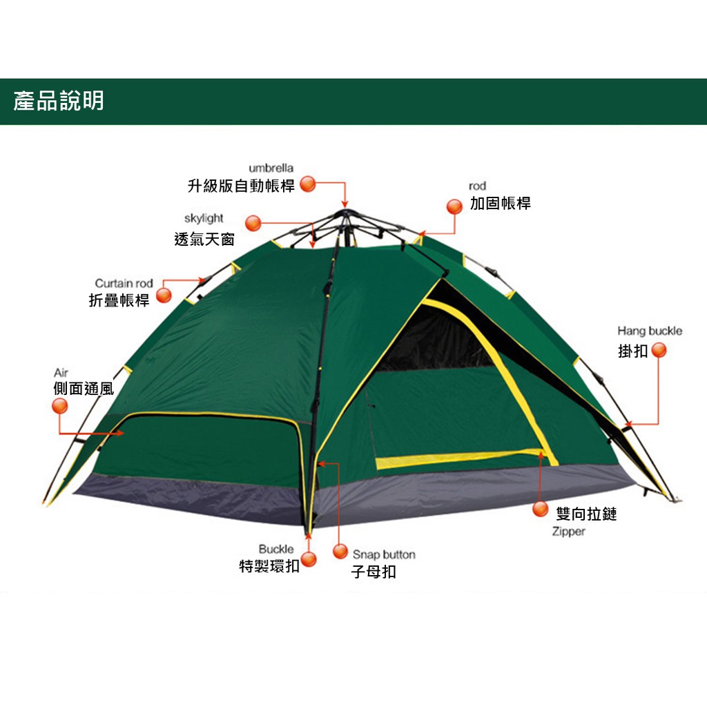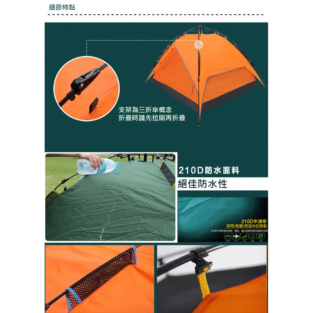 速搭帳棚 4人自動帳篷 雙層露營帳篷(兩用式可拆)
