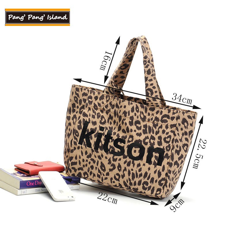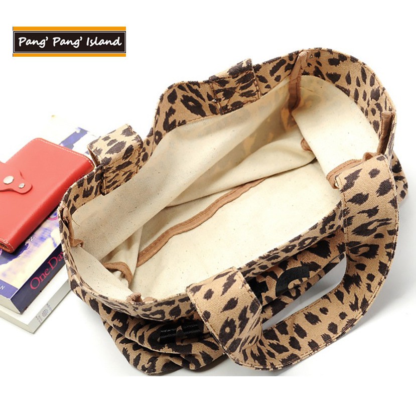 "Pang Pang Island"經典豹紋帆布拖特包(2入組)購物袋/手提袋 日雜附錄款