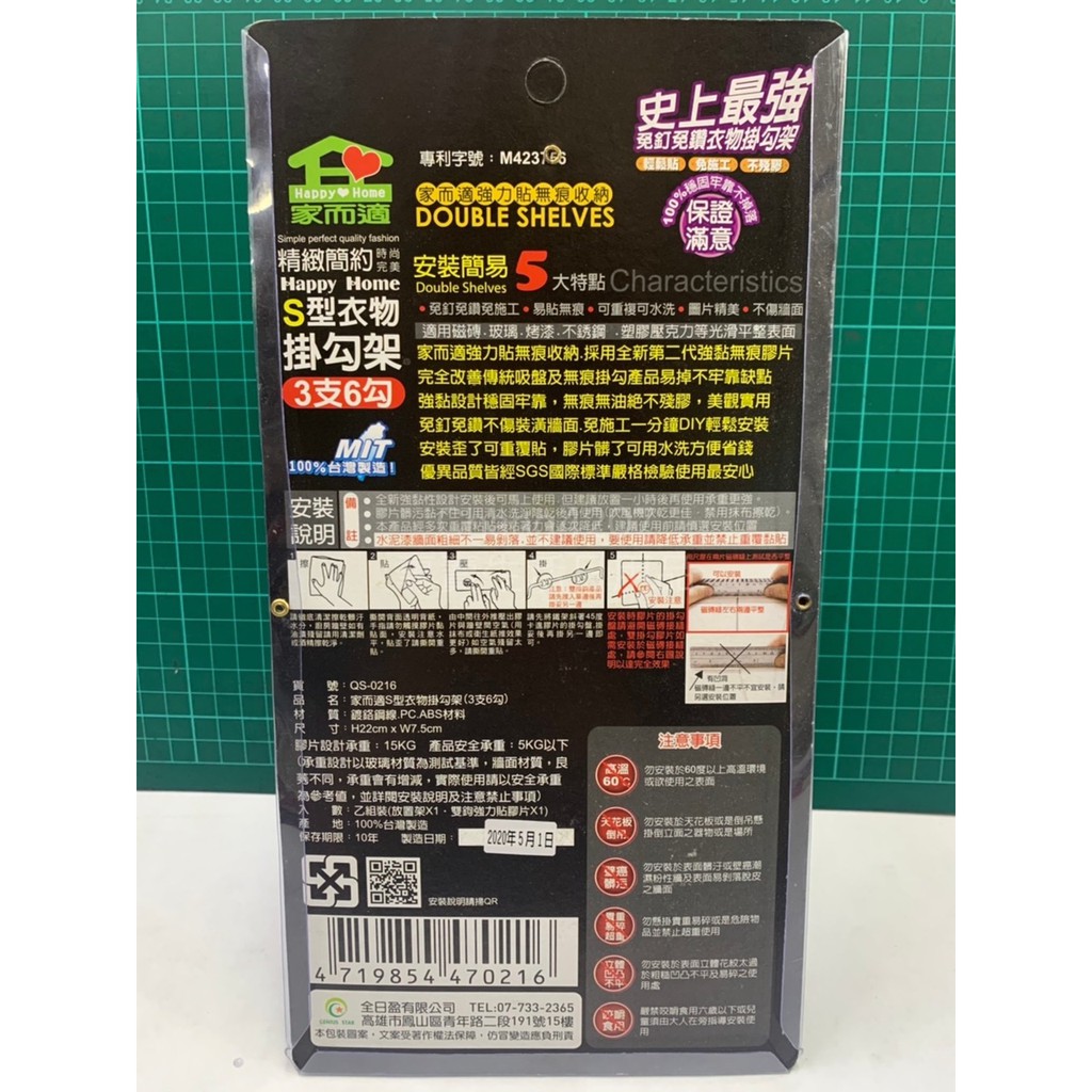 0216 家而適 S型衣物掛勾架 S型衣物掛勾 掛勾 3支6鈎 現貨供應 快速出貨