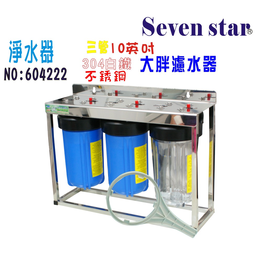 10吋大胖三管白鐵架 過濾器組 腳架面板304白鐵全戶淨水器 貨號 604222 Seven star淨水網