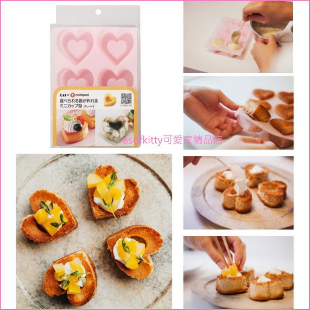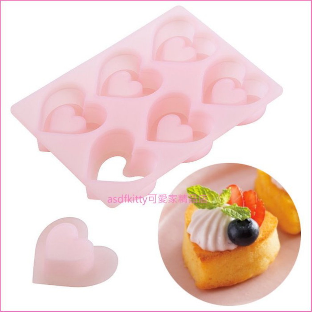 asdfkitty*貝印 COOKPAD 心型中空矽膠模6連-可放餡-蛋糕模/菜凍模/布丁模-日本正版
