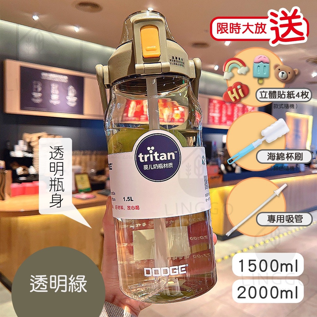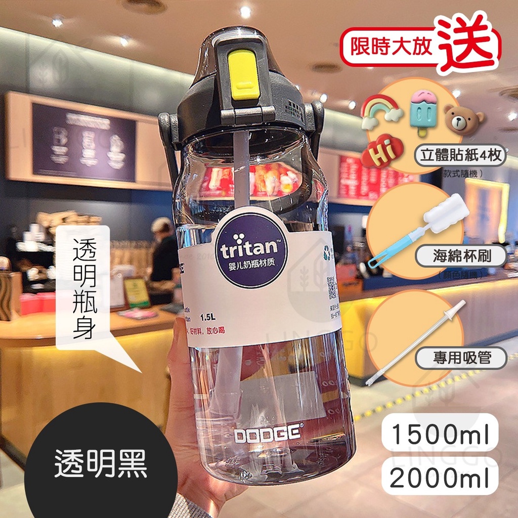 【台灣24h出貨】漸層水壺 tritan水壺 磨砂水壺 吸管水壺 水壺 2000ml 水壺 1500ml 大容量水壺