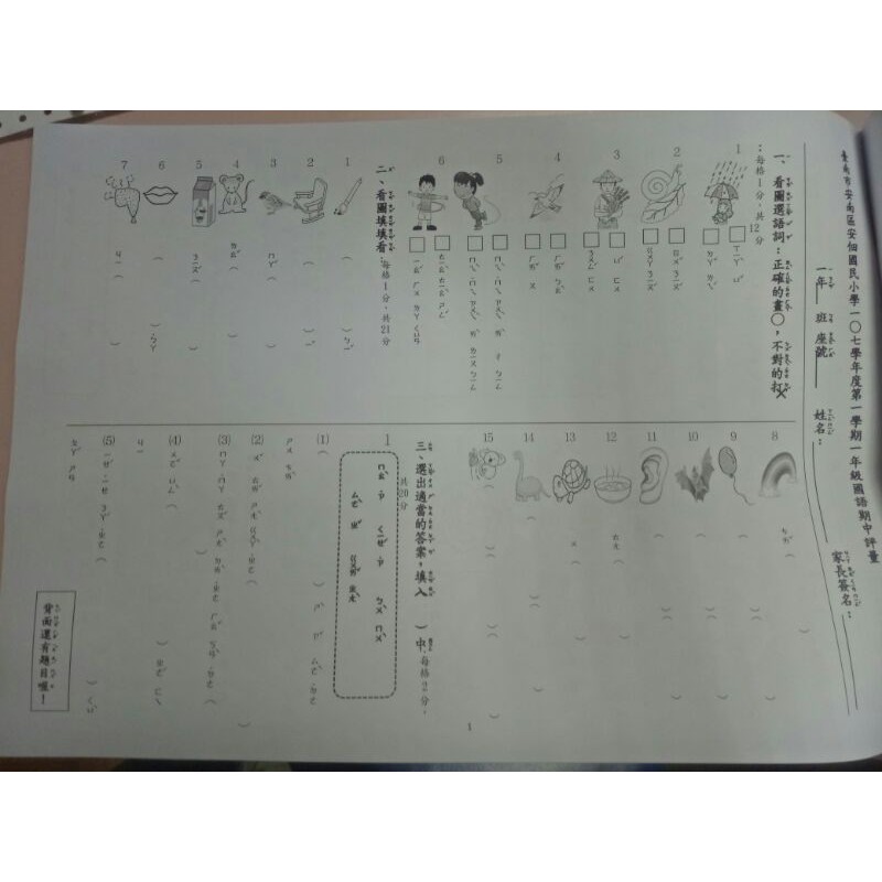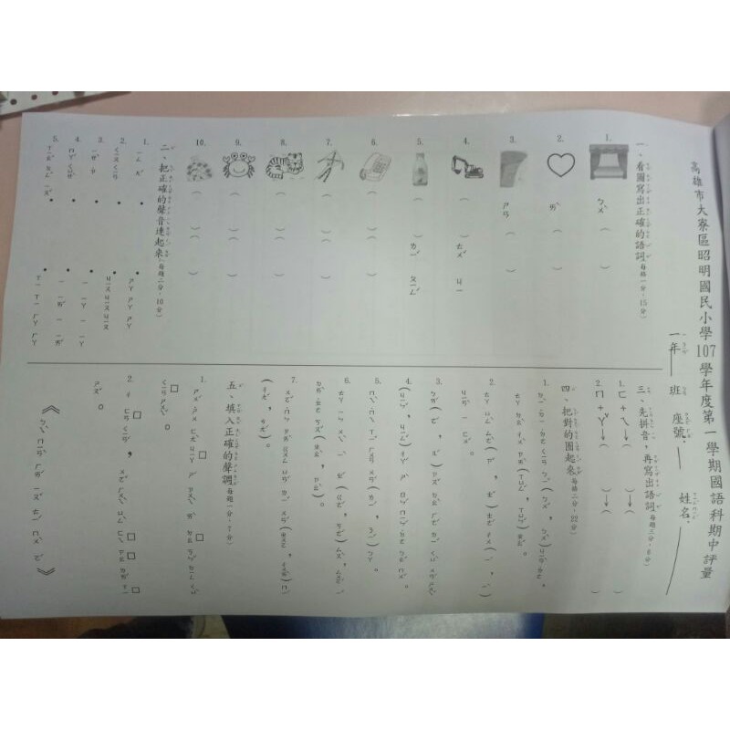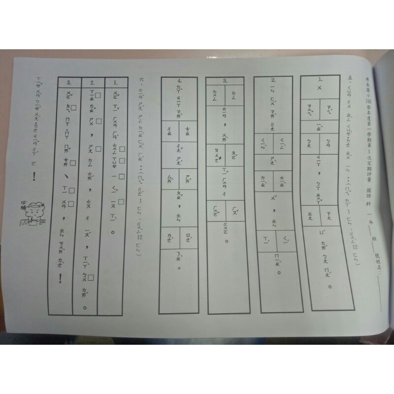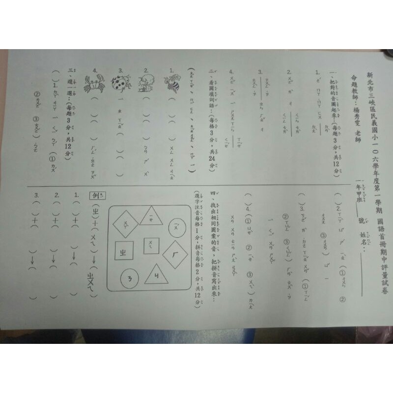 106-108學年度,16所國小的注音會考考卷,A3size(適合大班銜接,小一)