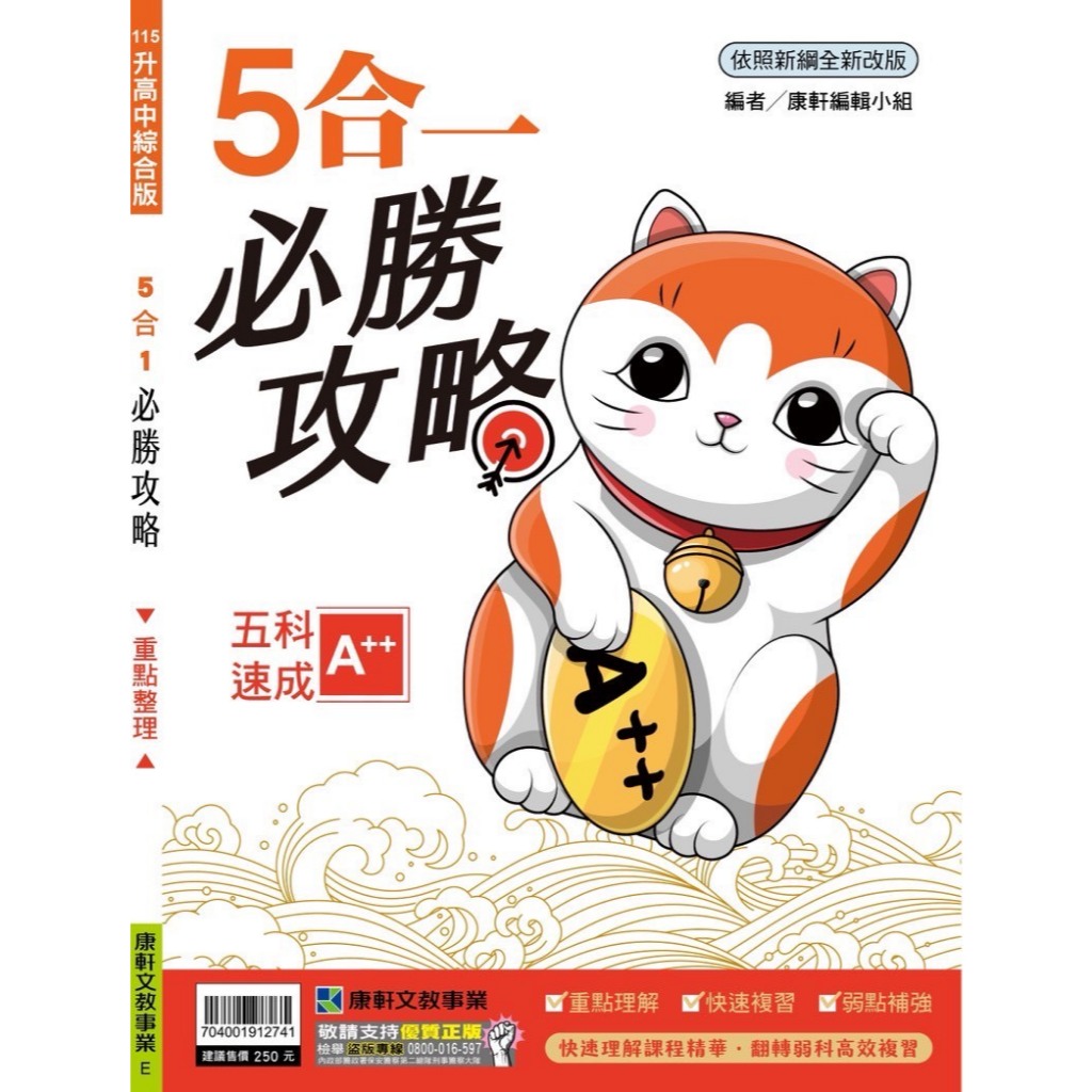 108課綱 康軒 5合1 必勝攻略 國中會考全科筆記 115國中筆記 國文 英語 數學 自然 社會 會考筆記