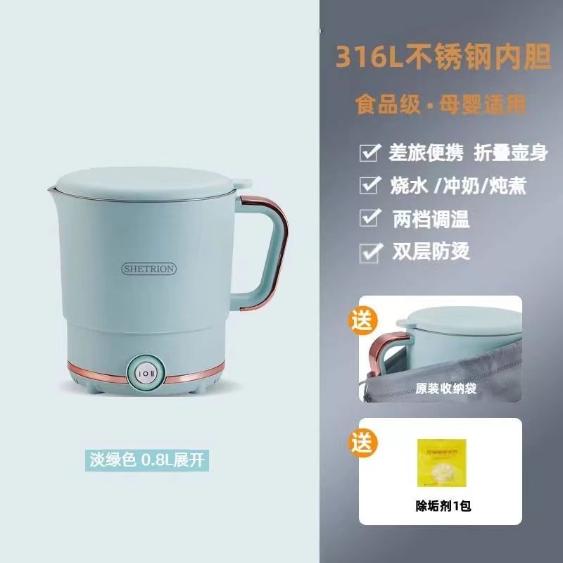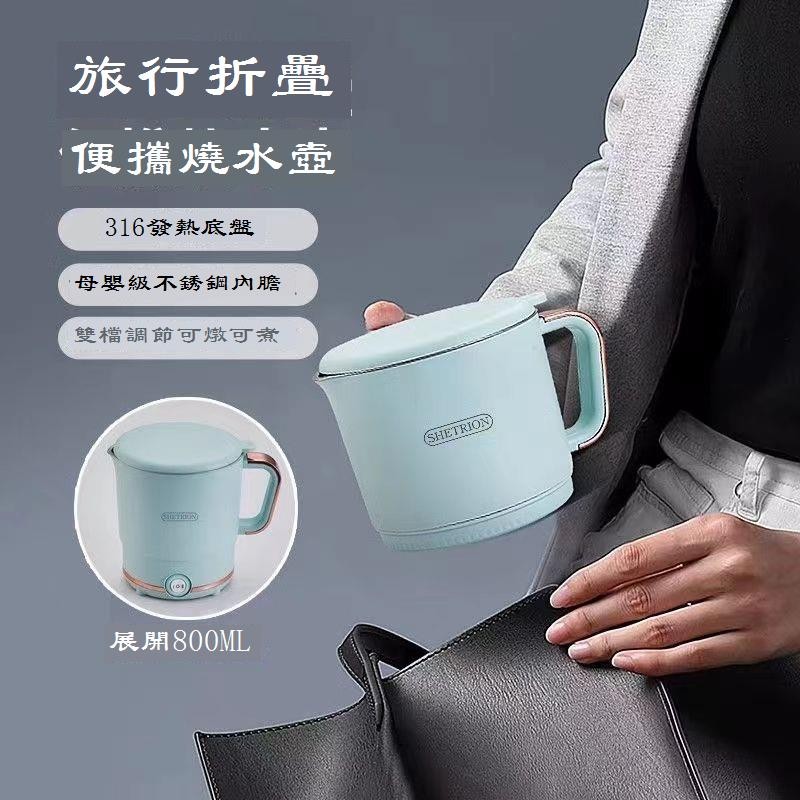 110V-220v旅行可摺疊燒水壺/便攜式不鏽鋼家用全自動小型燒水杯/出差電熱水壺/全球通用(需要自備轉換頭)