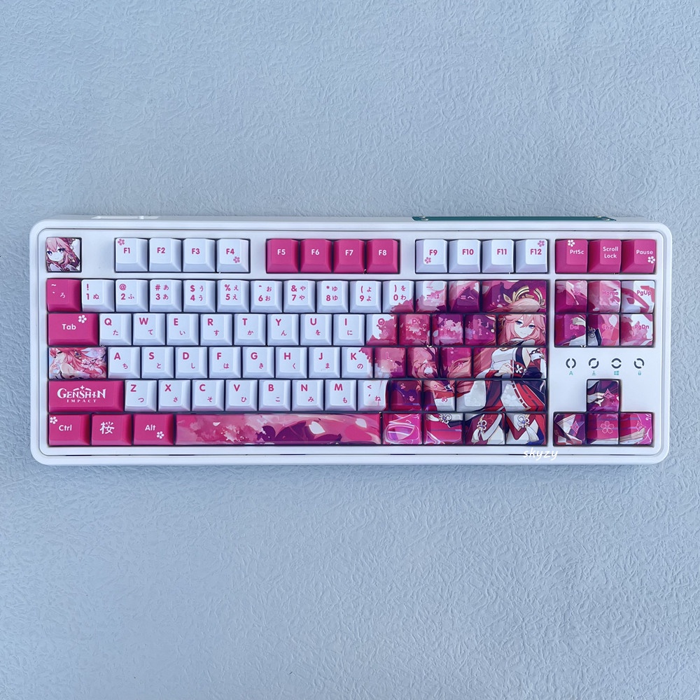 128鍵 原神八重神子鍵帽 櫻桃高度 八重宮司 動漫 PBT 熱昇華機械鍵盤 鍵帽套裝
