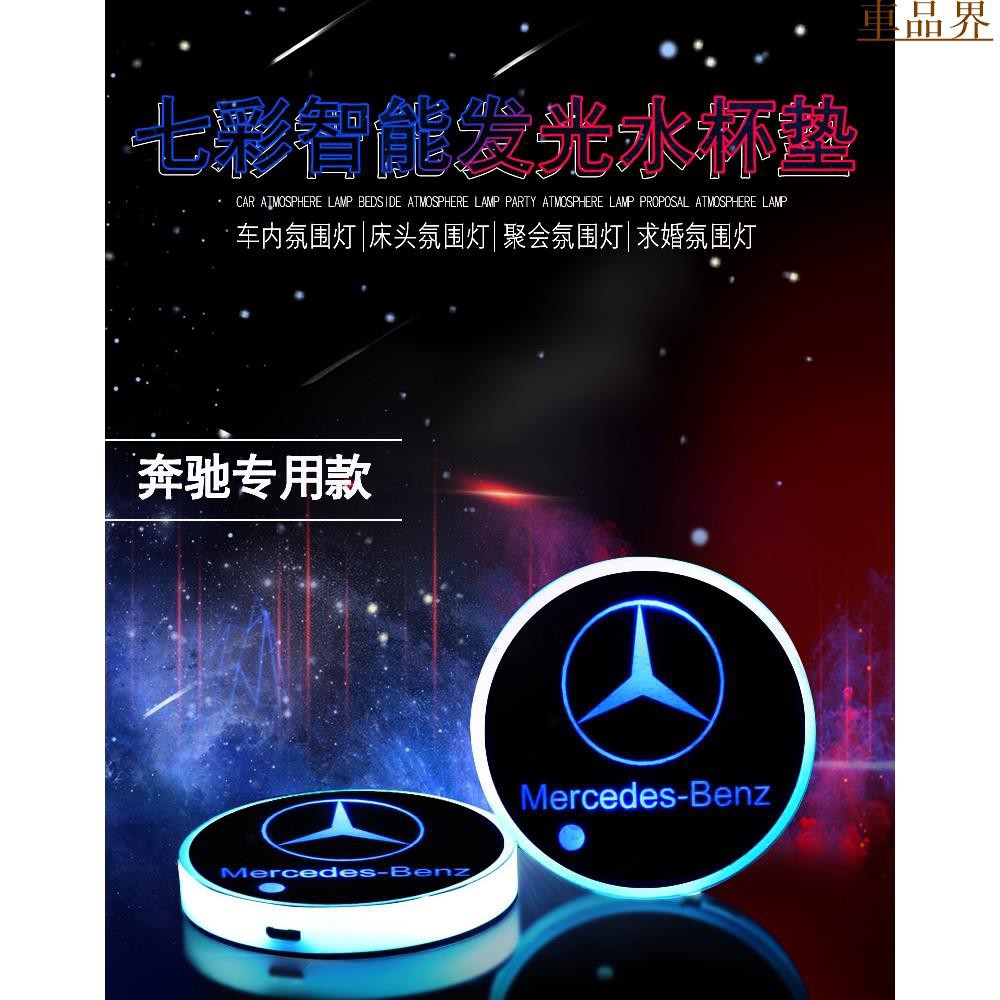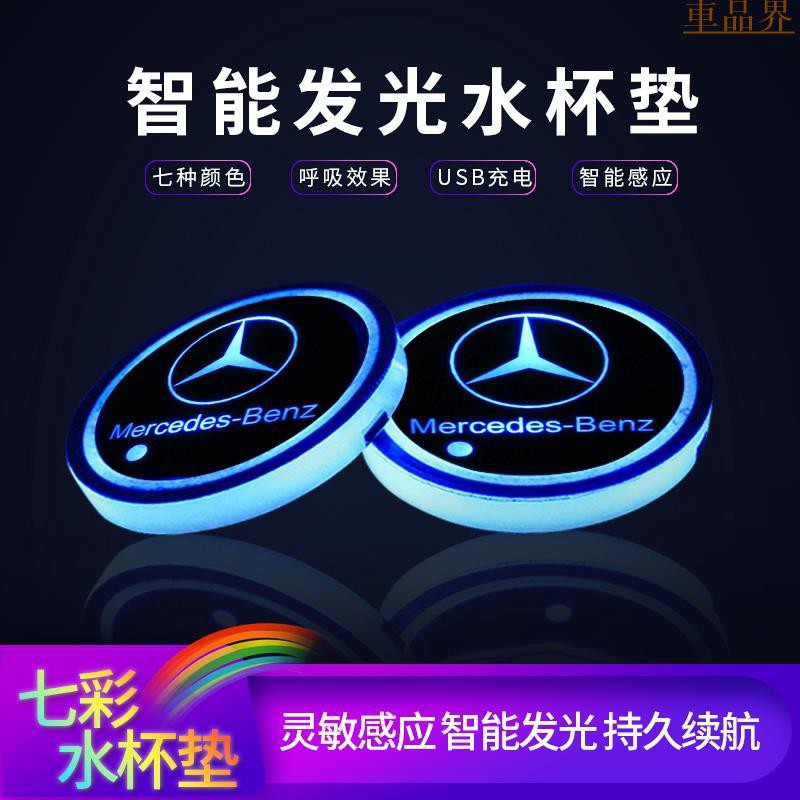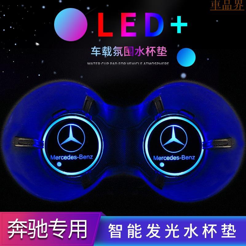 小符精品賓士 Benz水杯墊七彩發光新C級E級GLC CLA CLS內飾改裝氛圍燈裝飾燈 LED水杯墊 智能