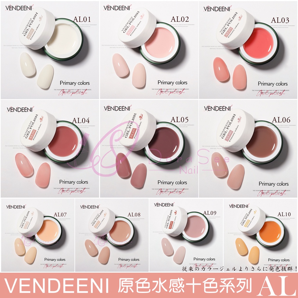 VENDEENI 日式膠 AL 原色水感十色系列 光撩膠 罐裝膠 甲油膠 光撩指甲油 半透凝膠 VDN Dorasee