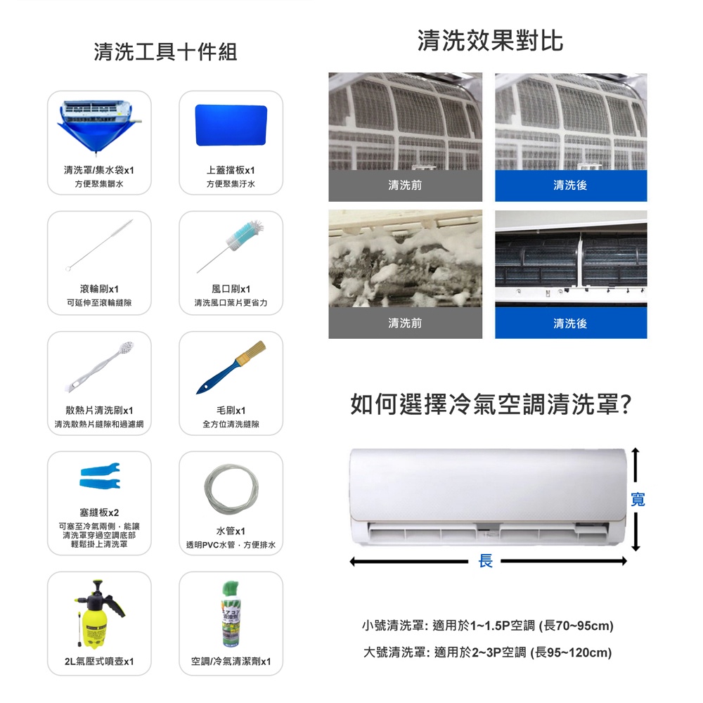 【台灣現貨~隔日到貨】冷氣空調清洗罩16件套 安裝簡單冷氣清洗工具1.5P長70~95cm 2、3P長95~120cm