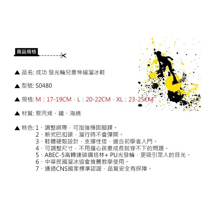 成功 S0480 兒童伸縮直排輪 溜冰鞋