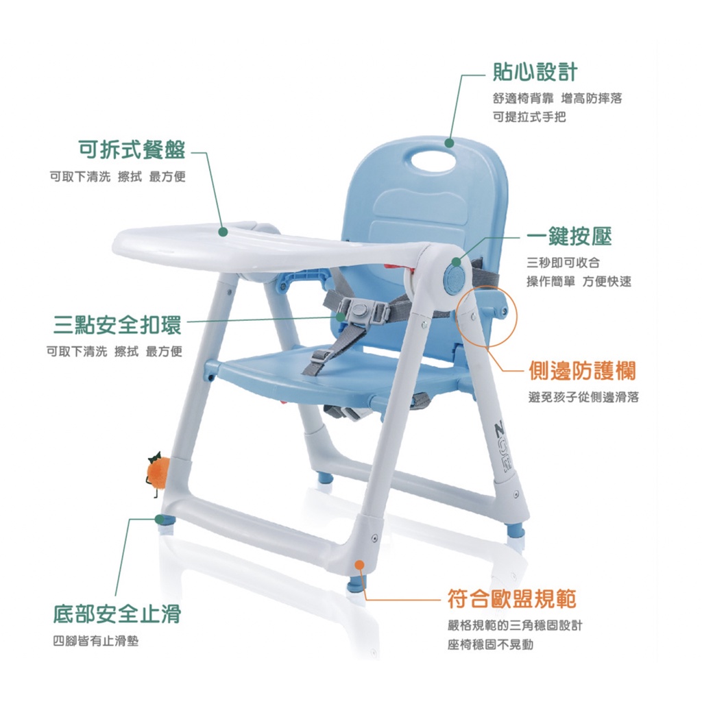 公司貨【原廠保固】ZOE Dining Booster 折疊式兒童餐椅/折疊桌/折疊餐椅/餐椅收納袋