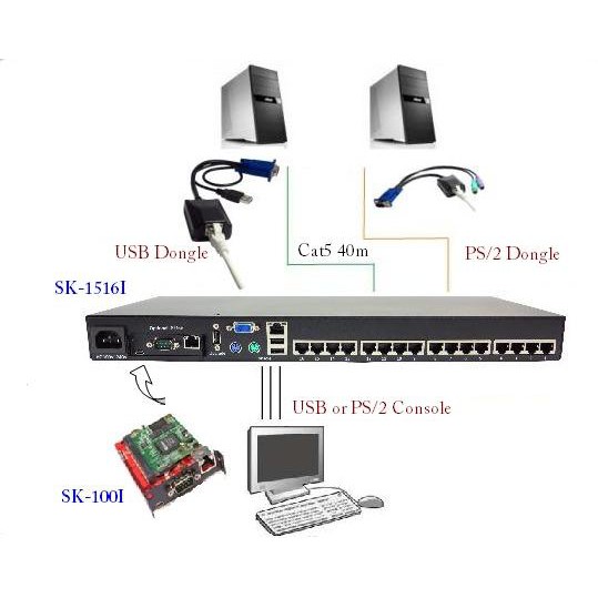 16埠 Cat5 IP KVM 切換器(SK1516BI) - SUNBOX
