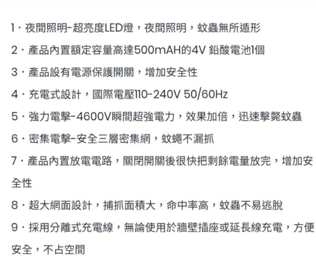 kinyo 分離式充電照明電蚊拍 捕蚊拍 CM-3315 夜間照明 超大網面 強力電擊 內附鉛酸電池 全電壓-【便利網】