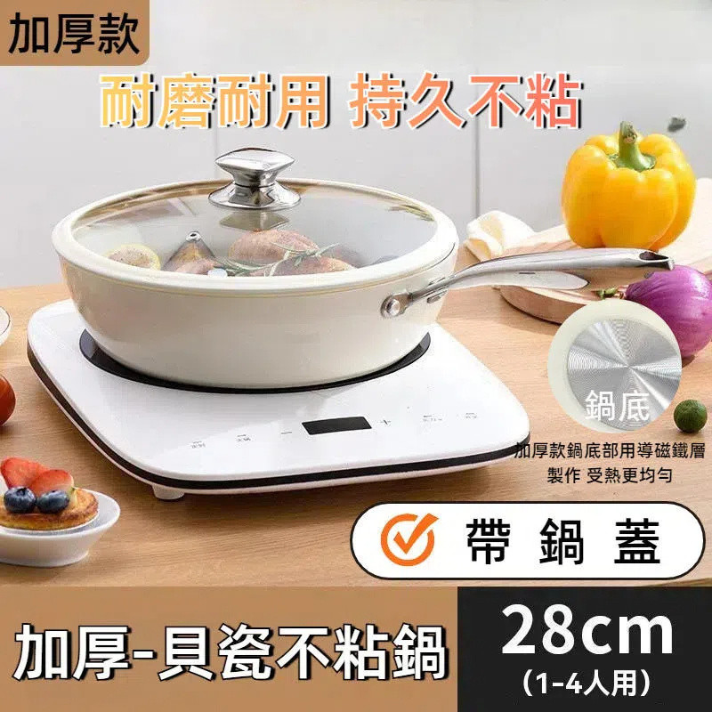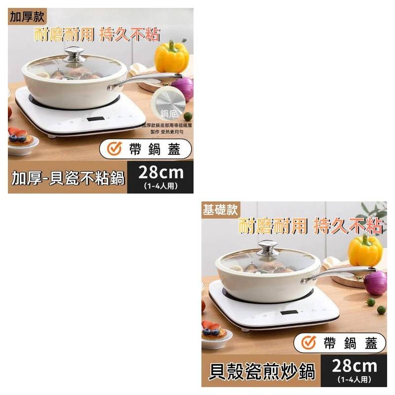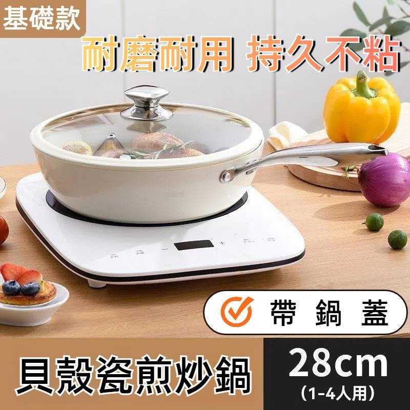 【隔日到貨】鵝卵石造型貝殼瓷不沾鍋 陶瓷不沾平煎鍋 平底鍋 不沾鍋 炒鍋 煎鍋 無塗層炒鍋 陶瓷鍋 無塗層陶瓷煎鍋