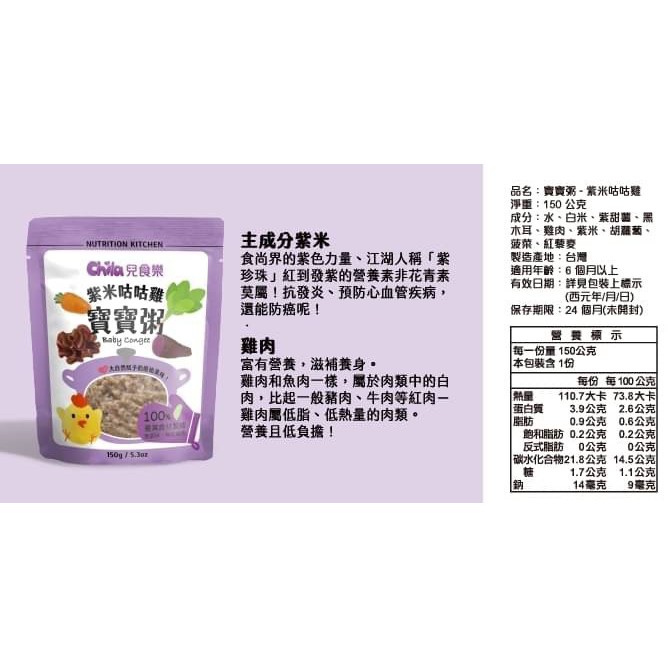 台灣 Chila 兒食樂 常溫寶寶粥 (共四種口味可選)